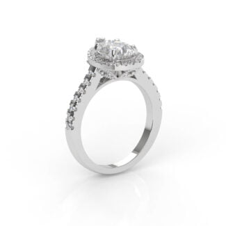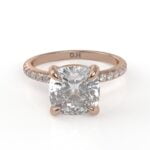 Whoa! The diamond’s girdle is encircled by a tiny “hidden” pavé halo, an unexpected element that elevates this classic form to the pinnacle of understated beauty. This engagement ring can be special ordered in any finger size, in Platinum, 10KT, 14KT & 18KT gold and can be customized for any shape and size CenterStone.