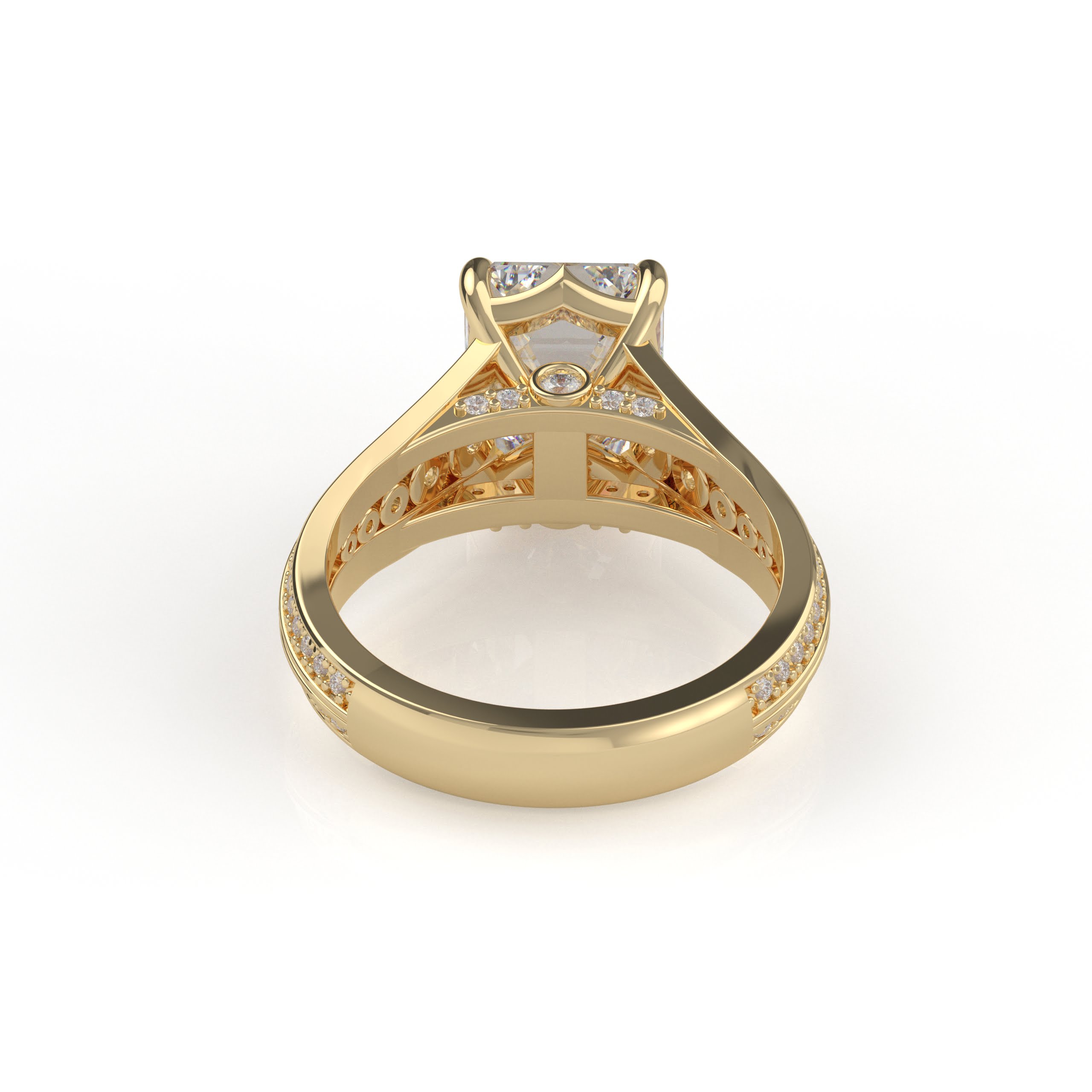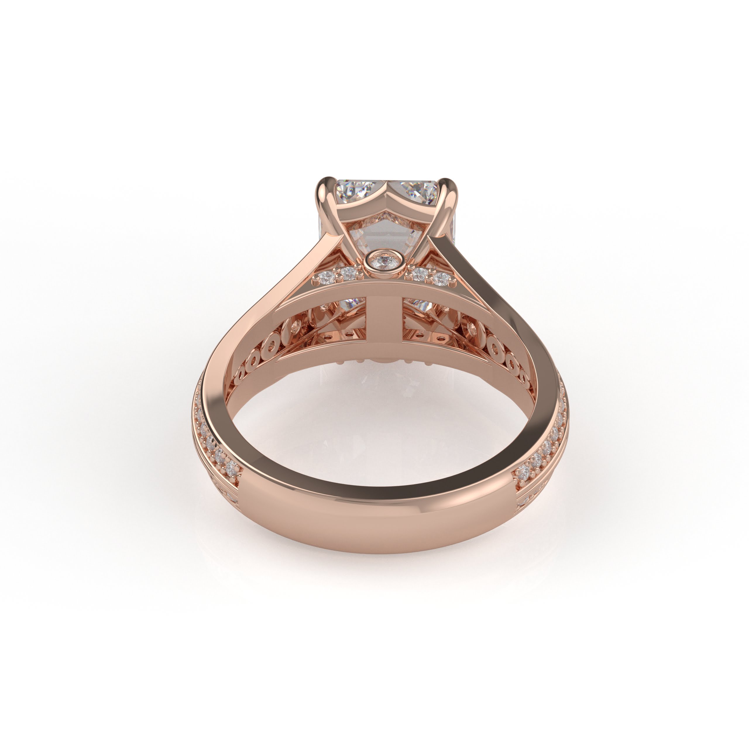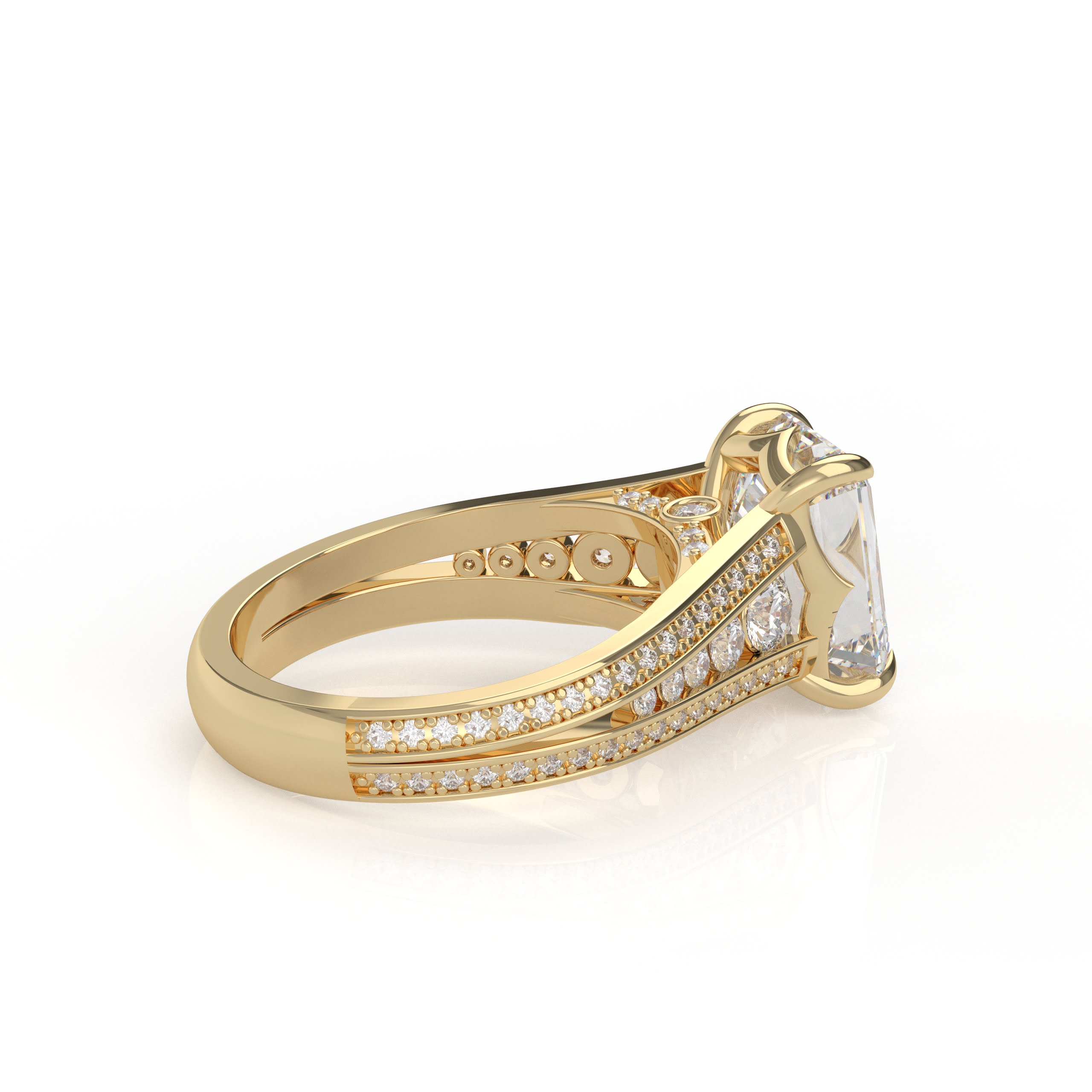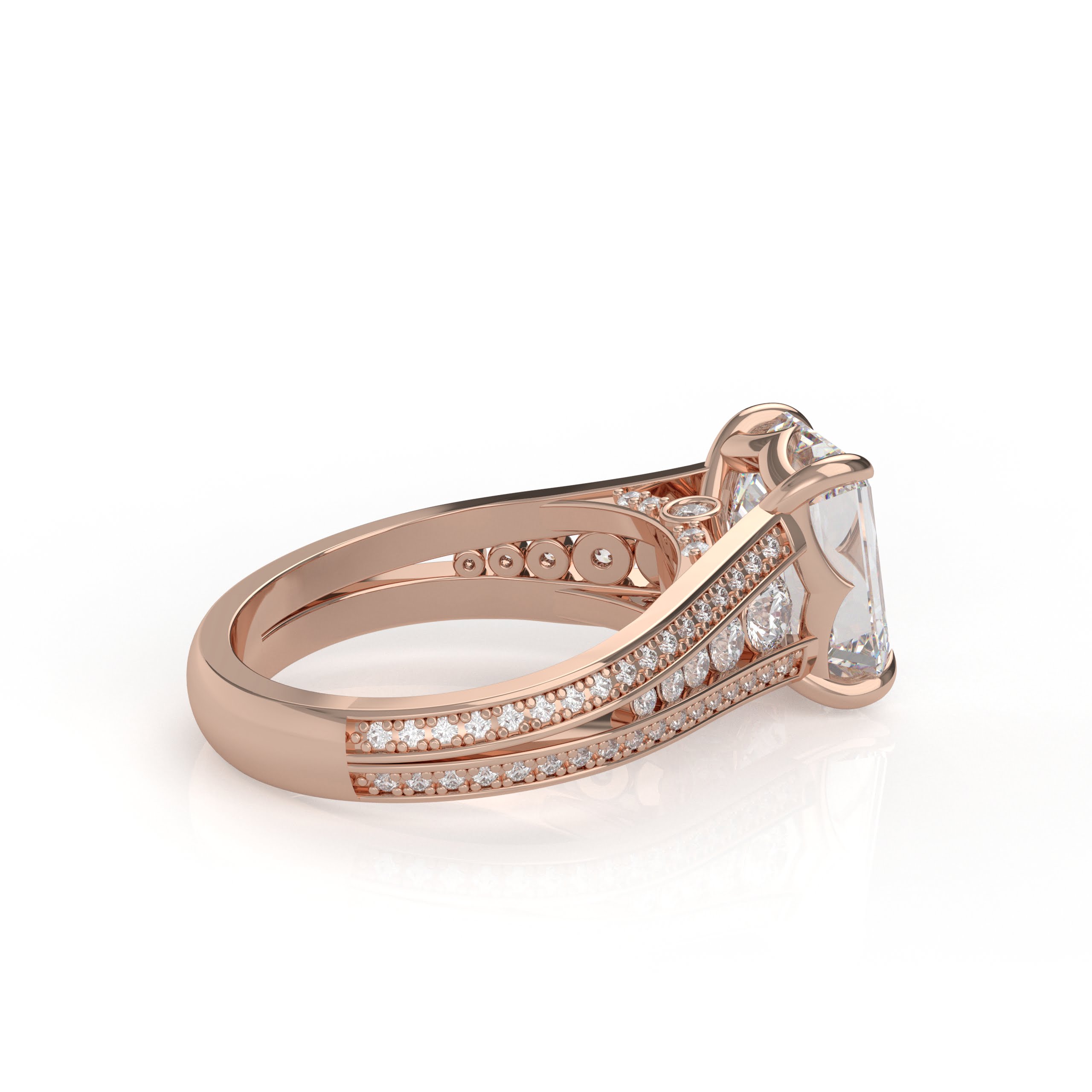 14K White Gold Emerald Cut Diamond Solitaire Engagement Ring with Triple-Row Diamond Band