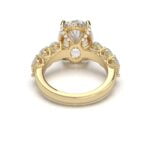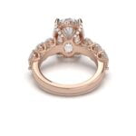 Whoa! The diamond’s girdle is encircled by a tiny “hidden” pavé halo diamond in bubble setting which is an unexpected element that elevates this classic form to the pinnacle of understated beauty. Moreover, it has small oval diamonds on shank in bubble setting. This engagement ring can be special ordered in any finger size, in Platinum, 10KT, 14KT & 18KT gold and can be customized for any shape and size CenterStone.
