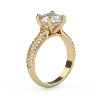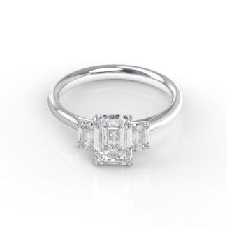 Three Stone diamond engagement ring is a study in timeless beauty and meticulous attention to detail. It features two pear-shaped diamonds that are expertly cut to frame a traditional Pear center stone. Because it was believed to symbolize tears of joy, the pear-shaped diamond gained popularity in the 18th century—a mood that is ideal for this sentimental ring. The two pear-shaped side stones were hand-selected to enhance the main stone’s brightness and brilliance. Their color grade is the same as the center diamond’s.