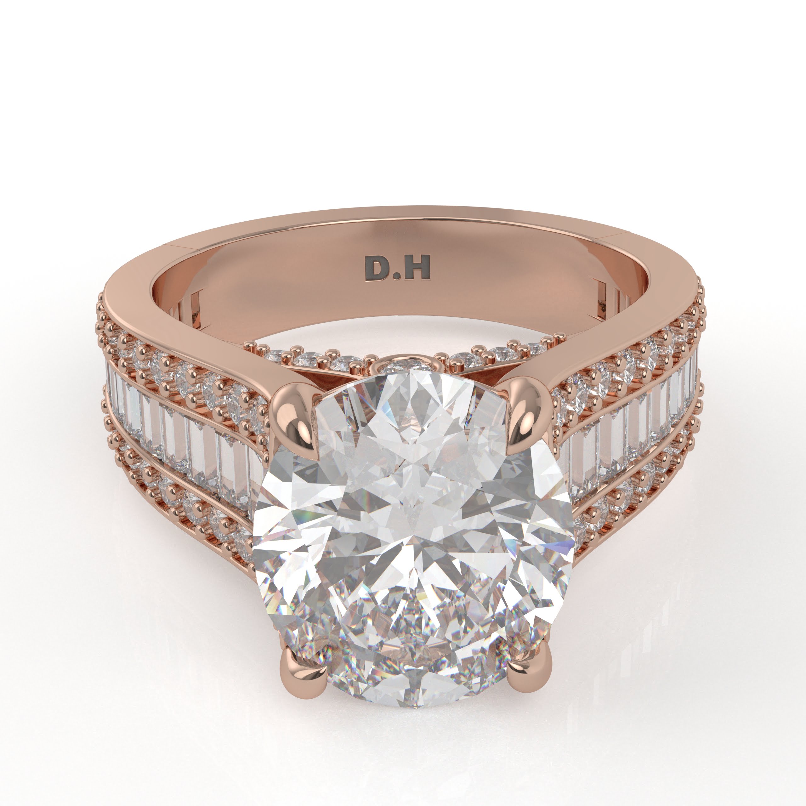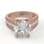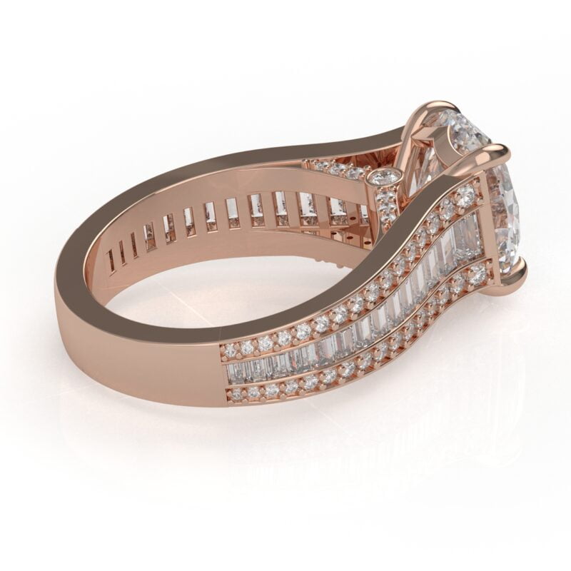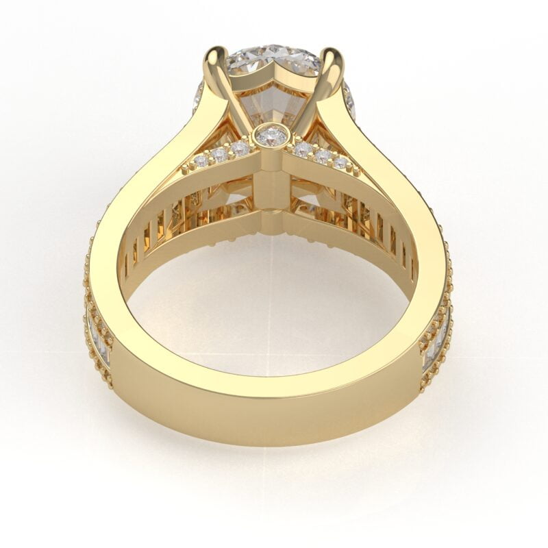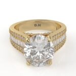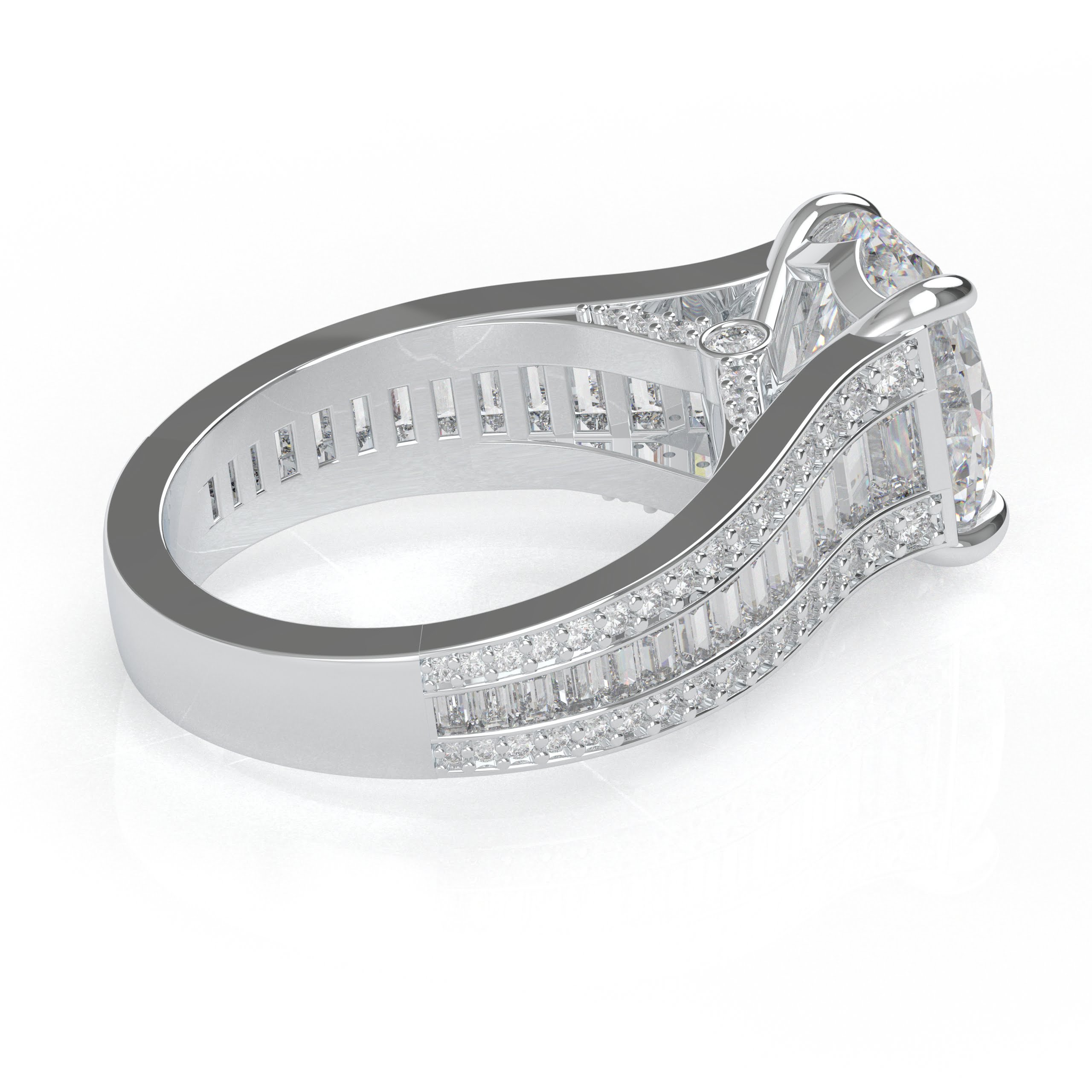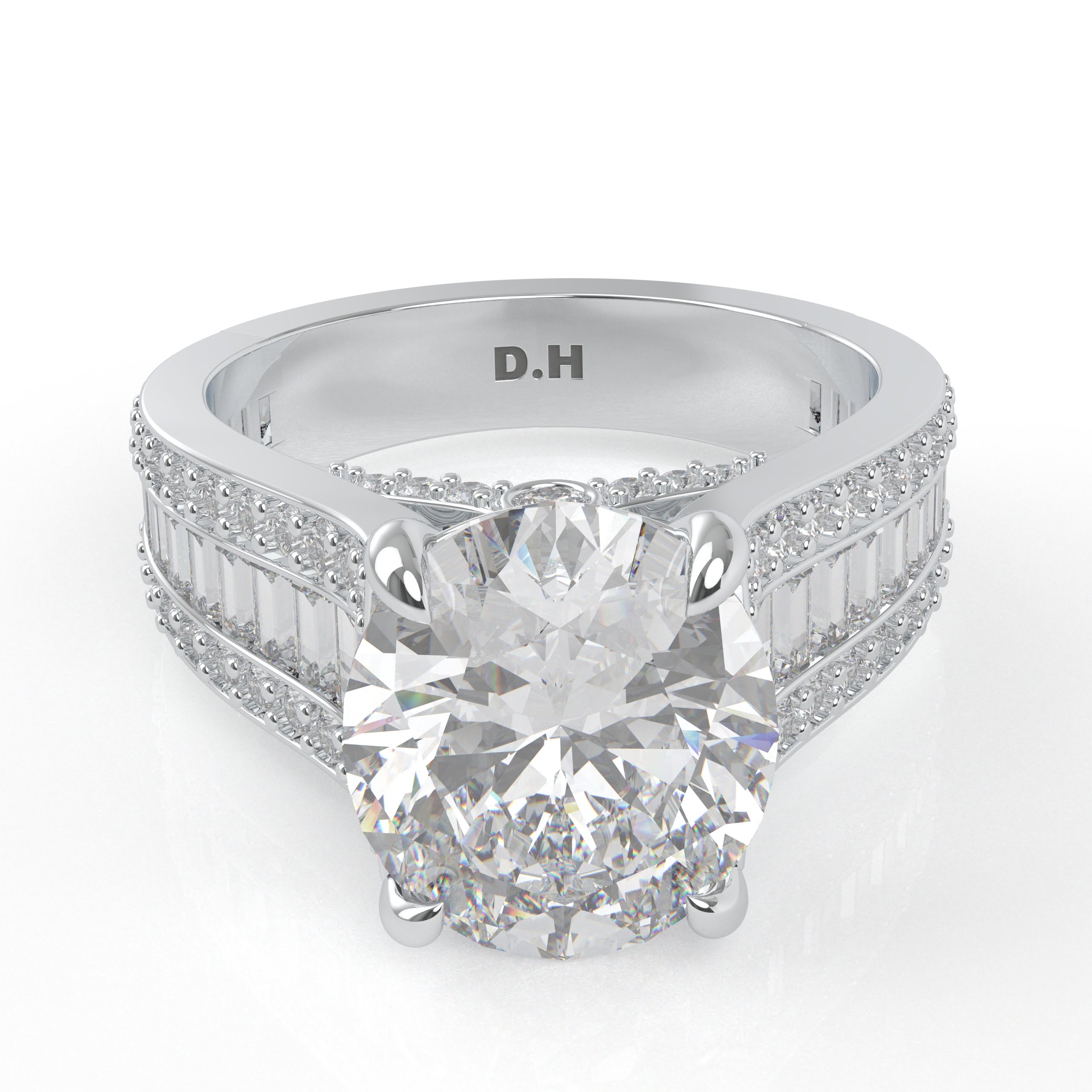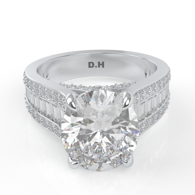 14K White Gold Oval Diamond Engagement Ring with Baguettes and Pavé Diamonds