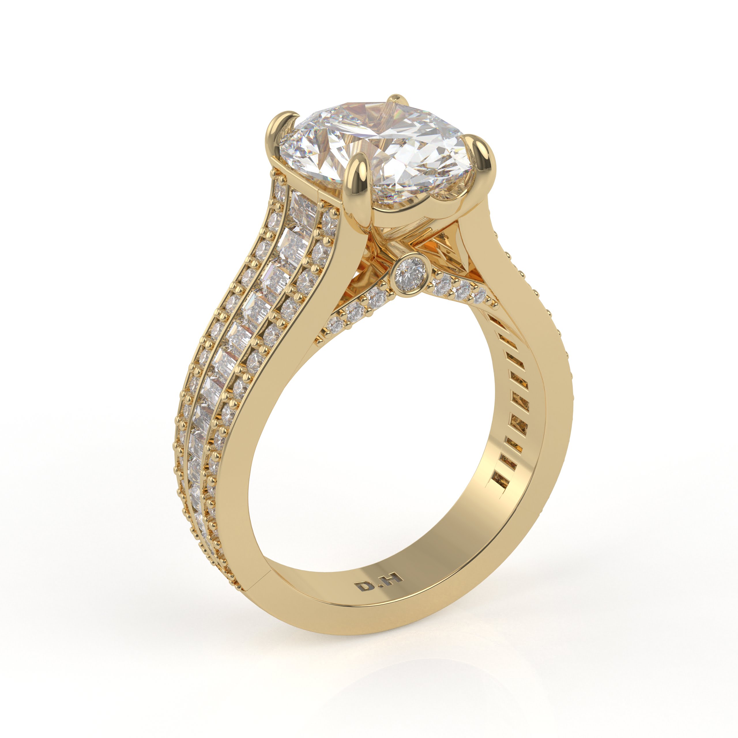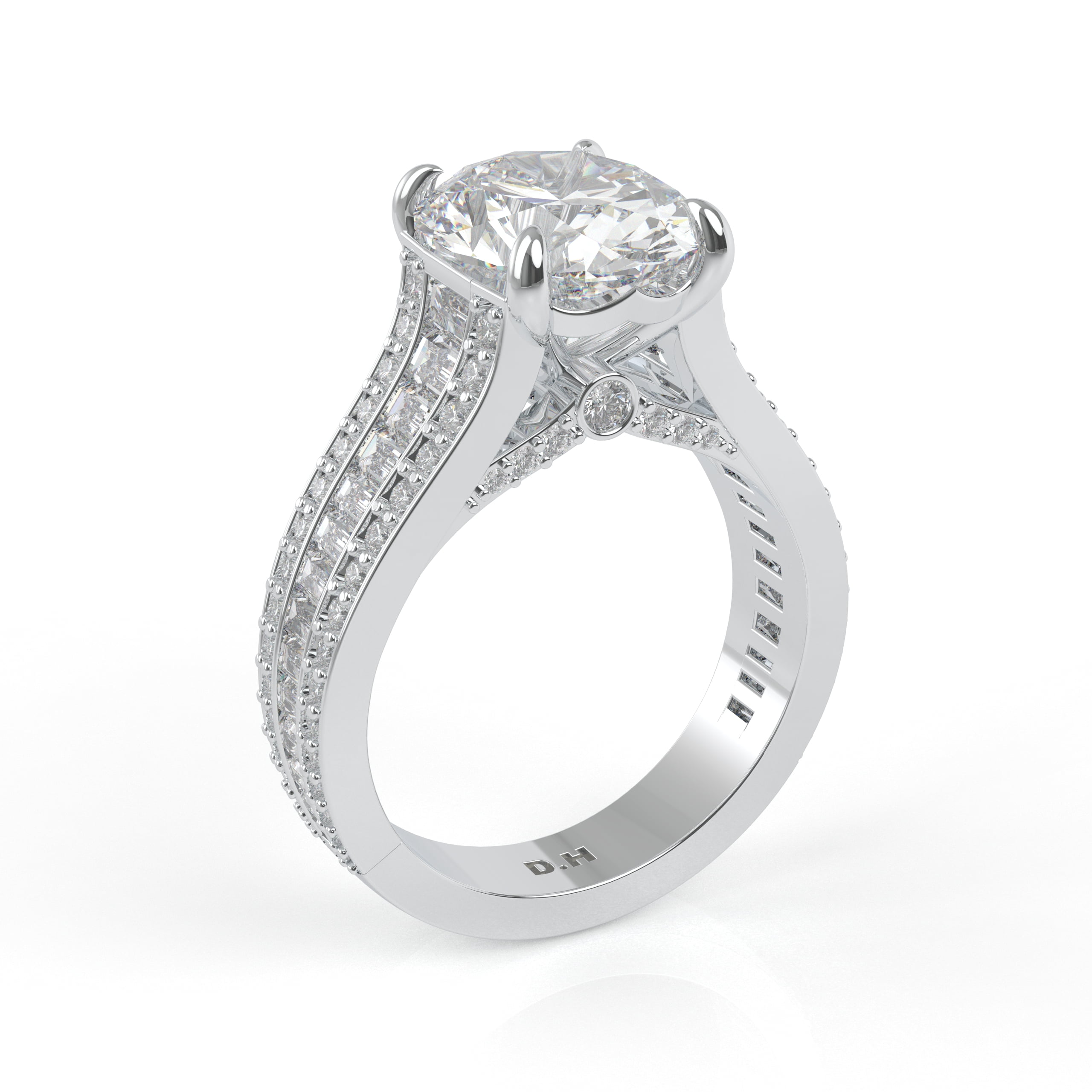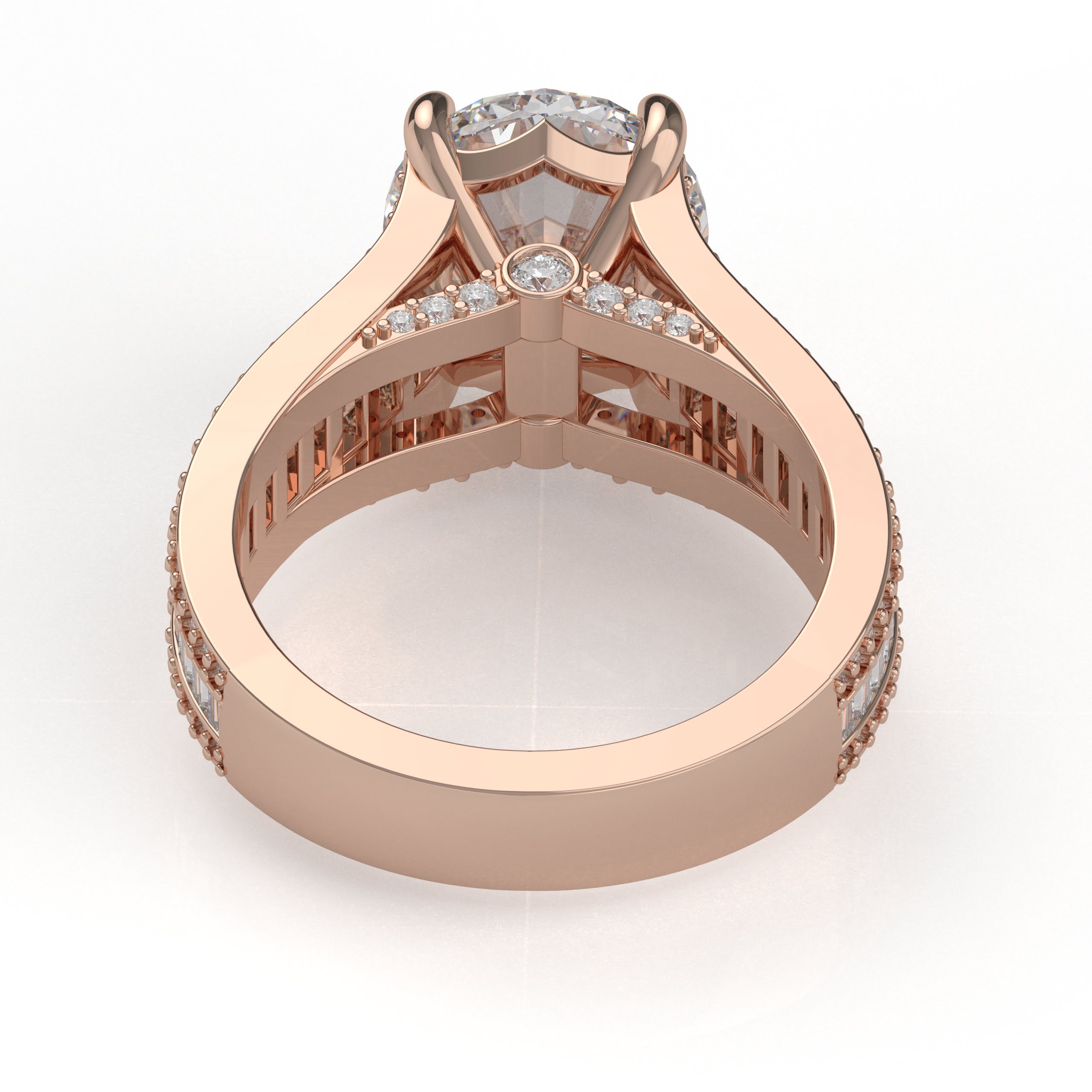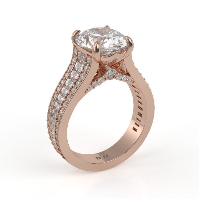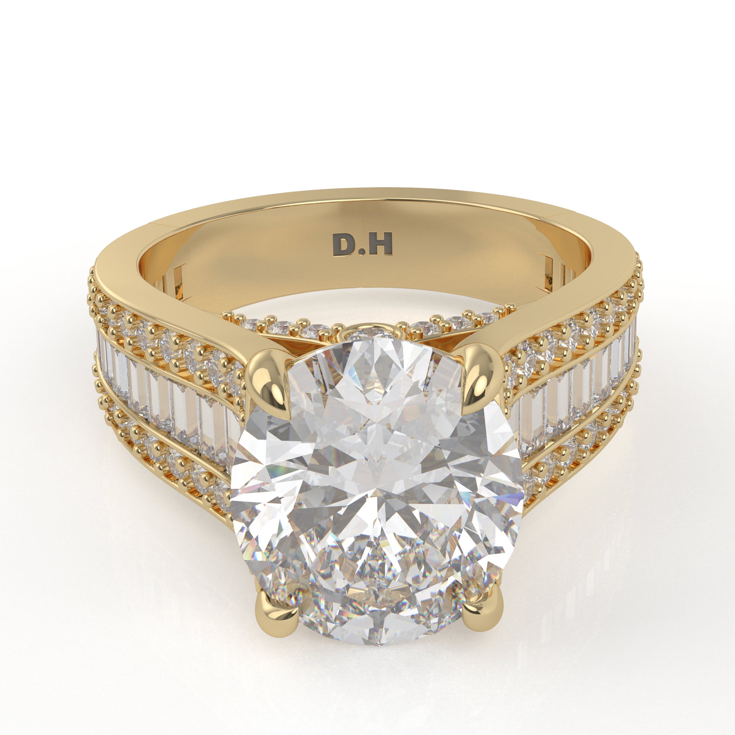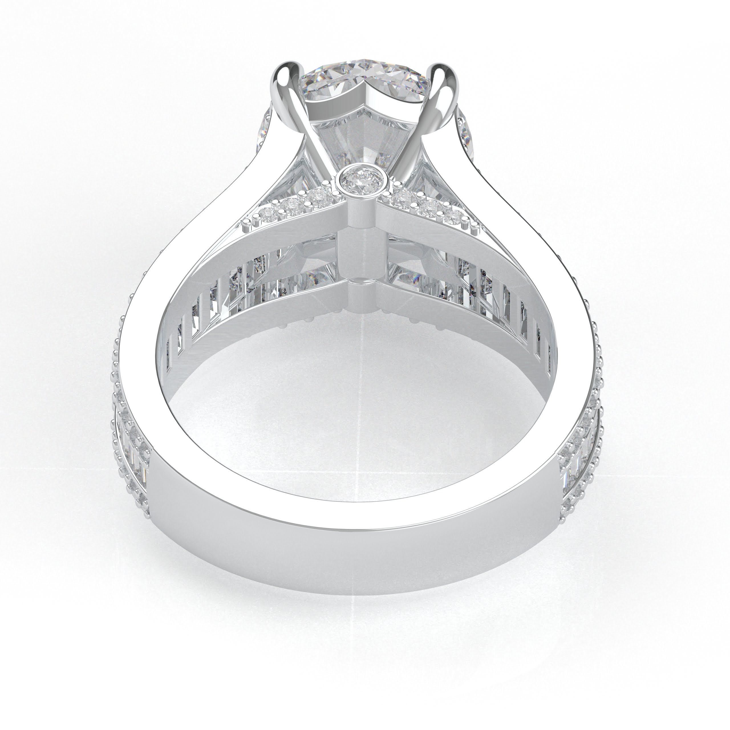 14K White Gold Oval Diamond Engagement Ring with Baguettes and Pavé Diamonds