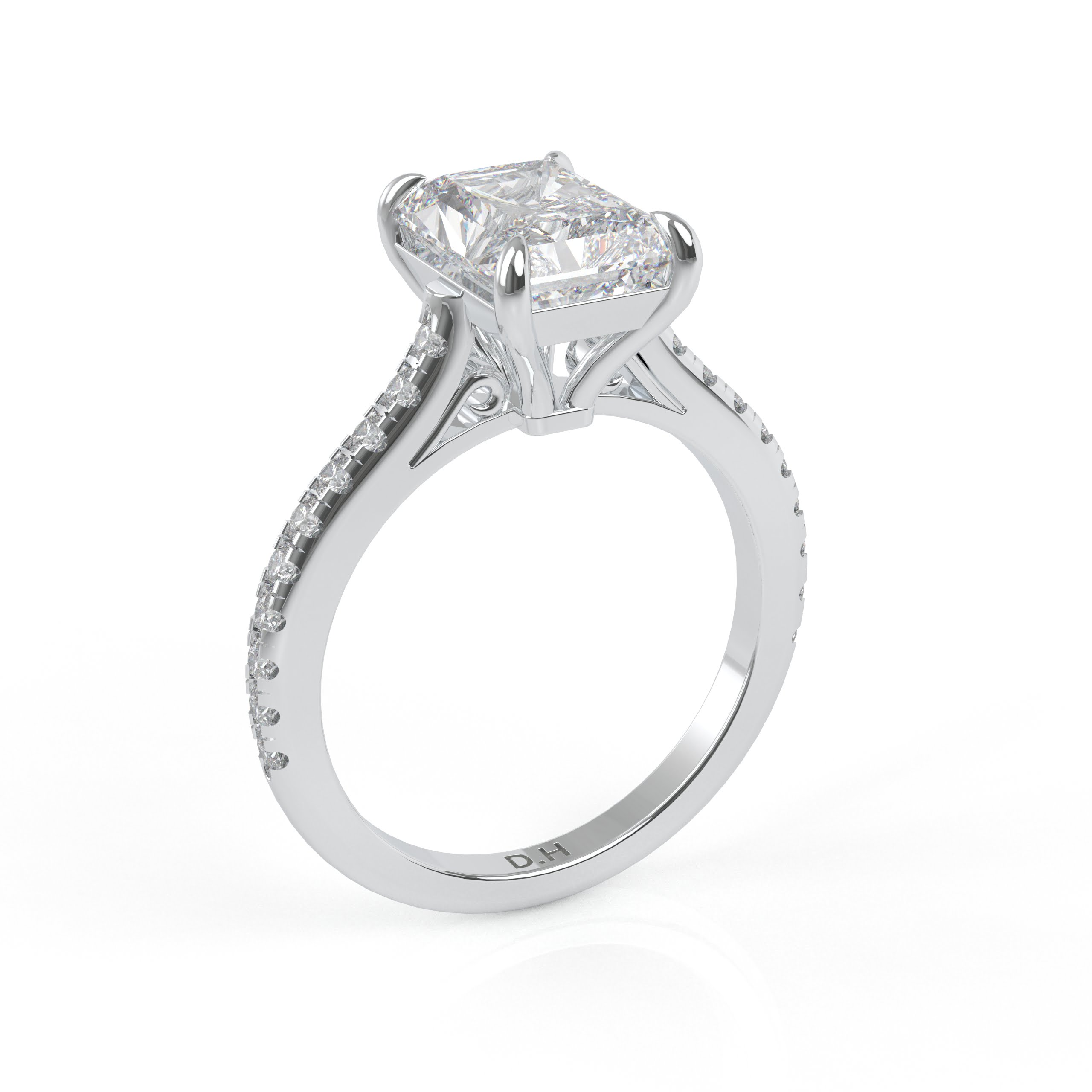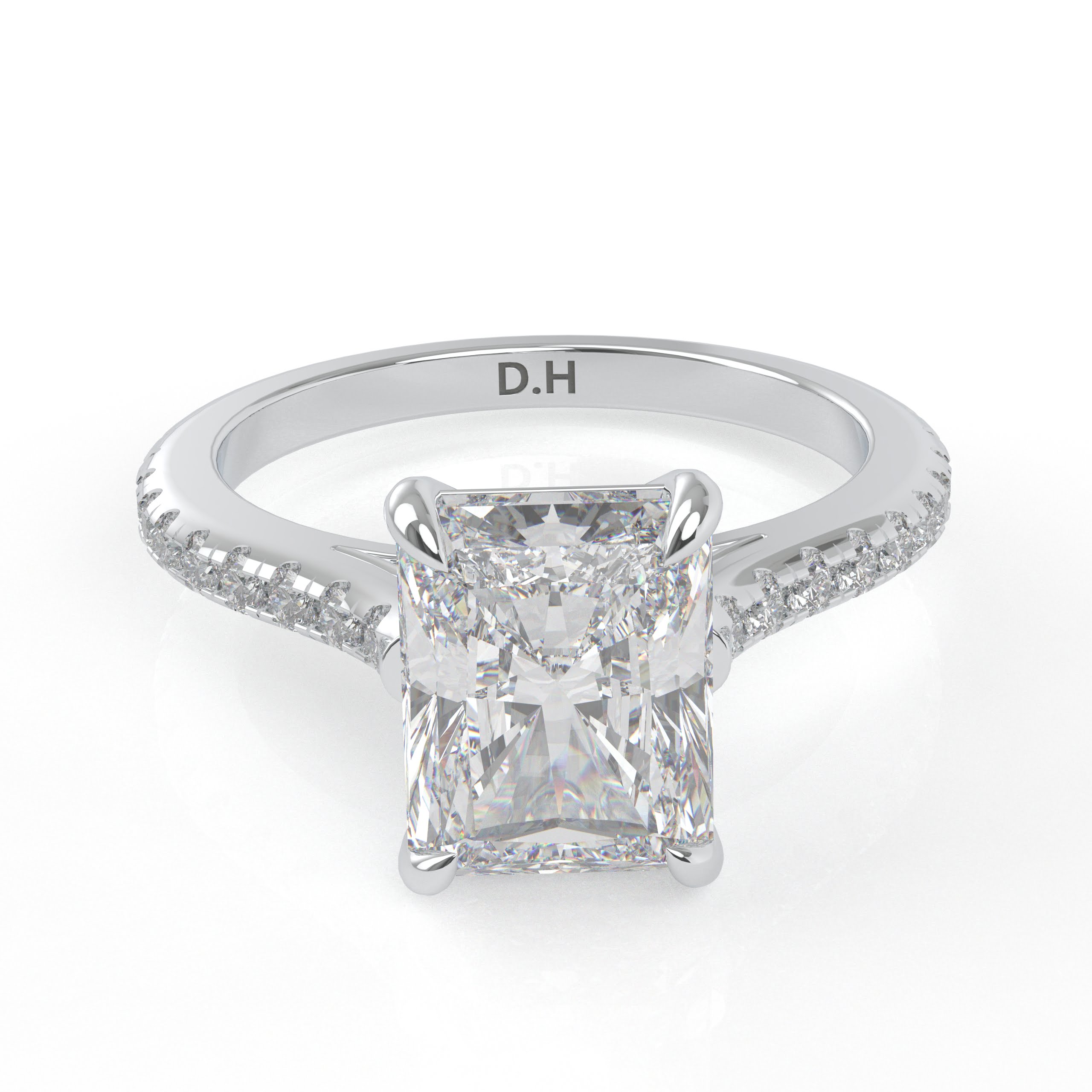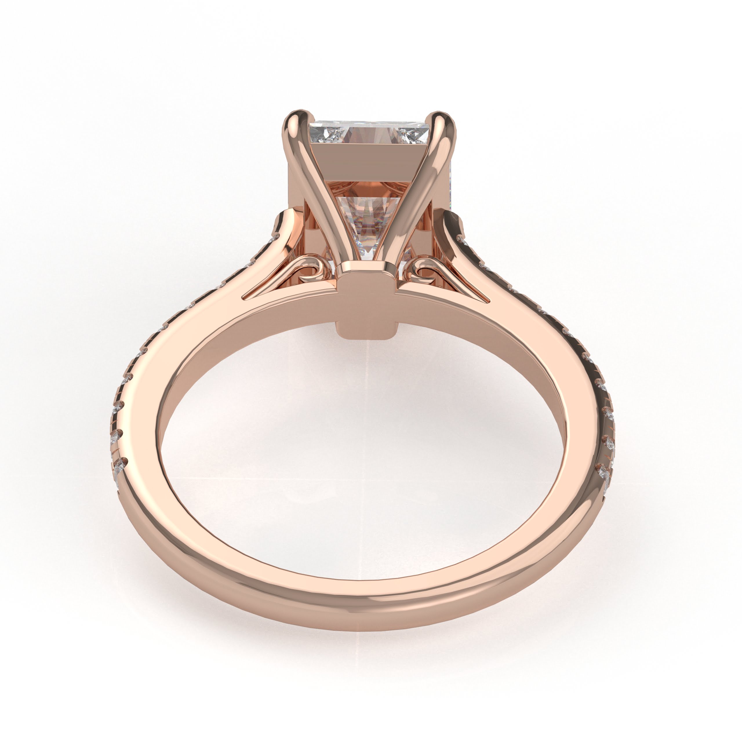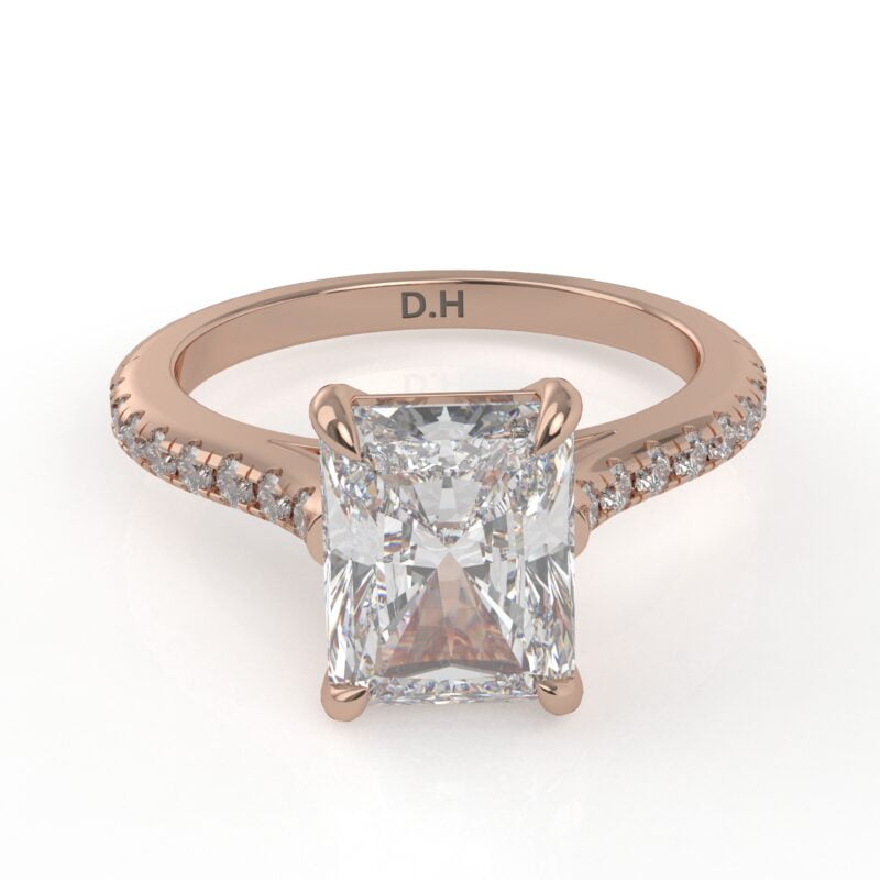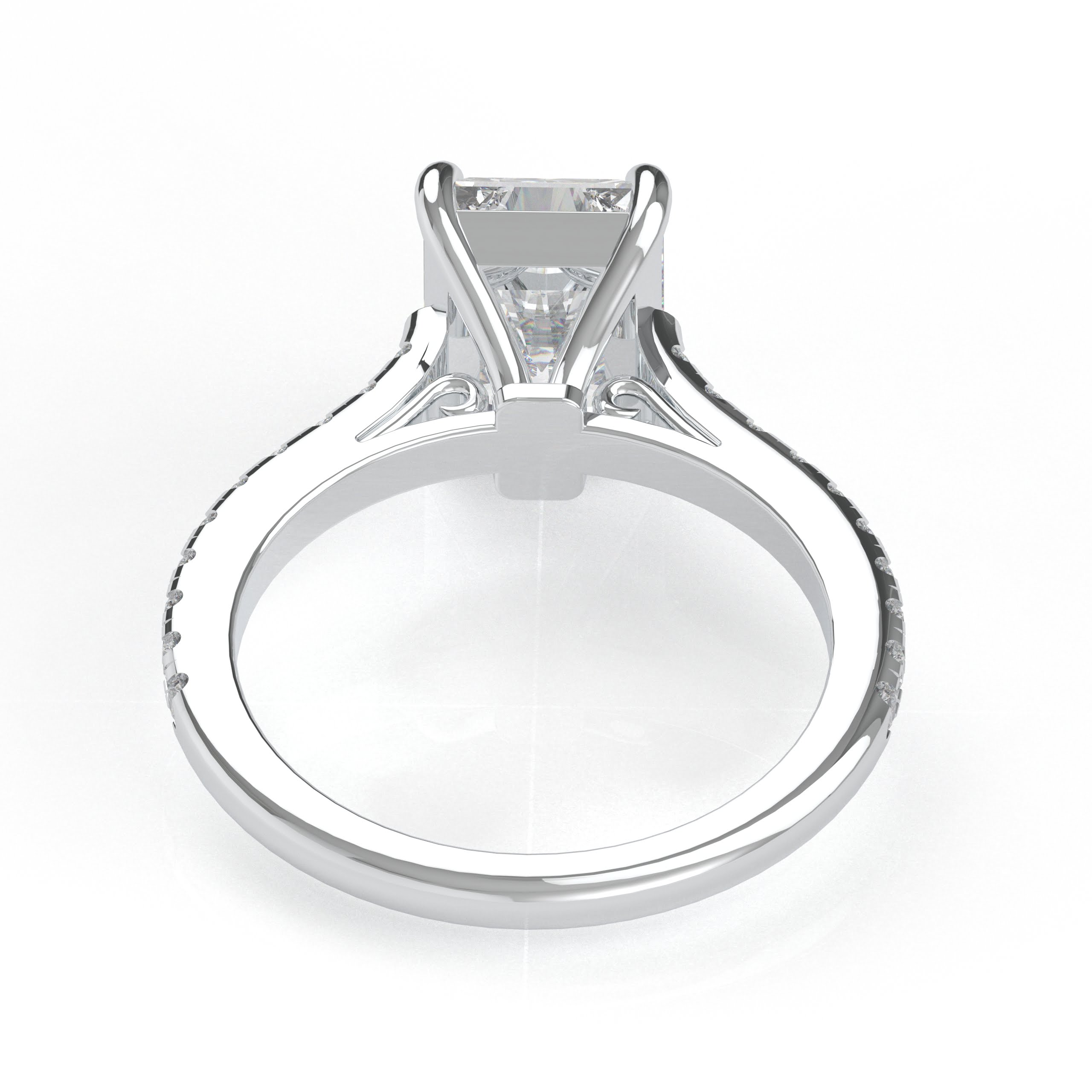 Whoa! The diamond’s girdle is encircled by a tiny “hidden” pavé halo, an unexpected element that elevates this classic form to the pinnacle of understated beauty. This engagement ring can be special ordered in any finger size, in Platinum, 10KT, 14KT & 18KT gold and can be customized for any shape and size CenterStone.