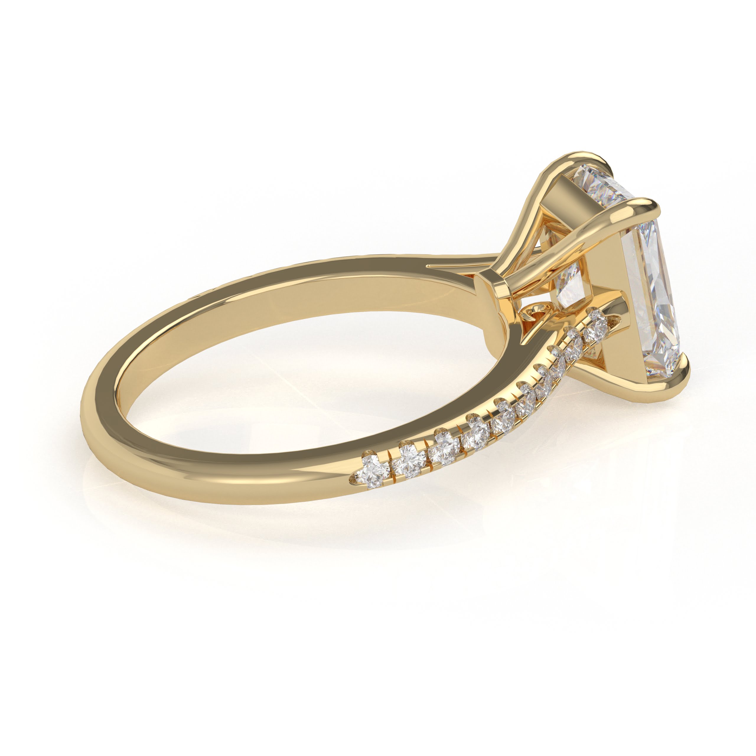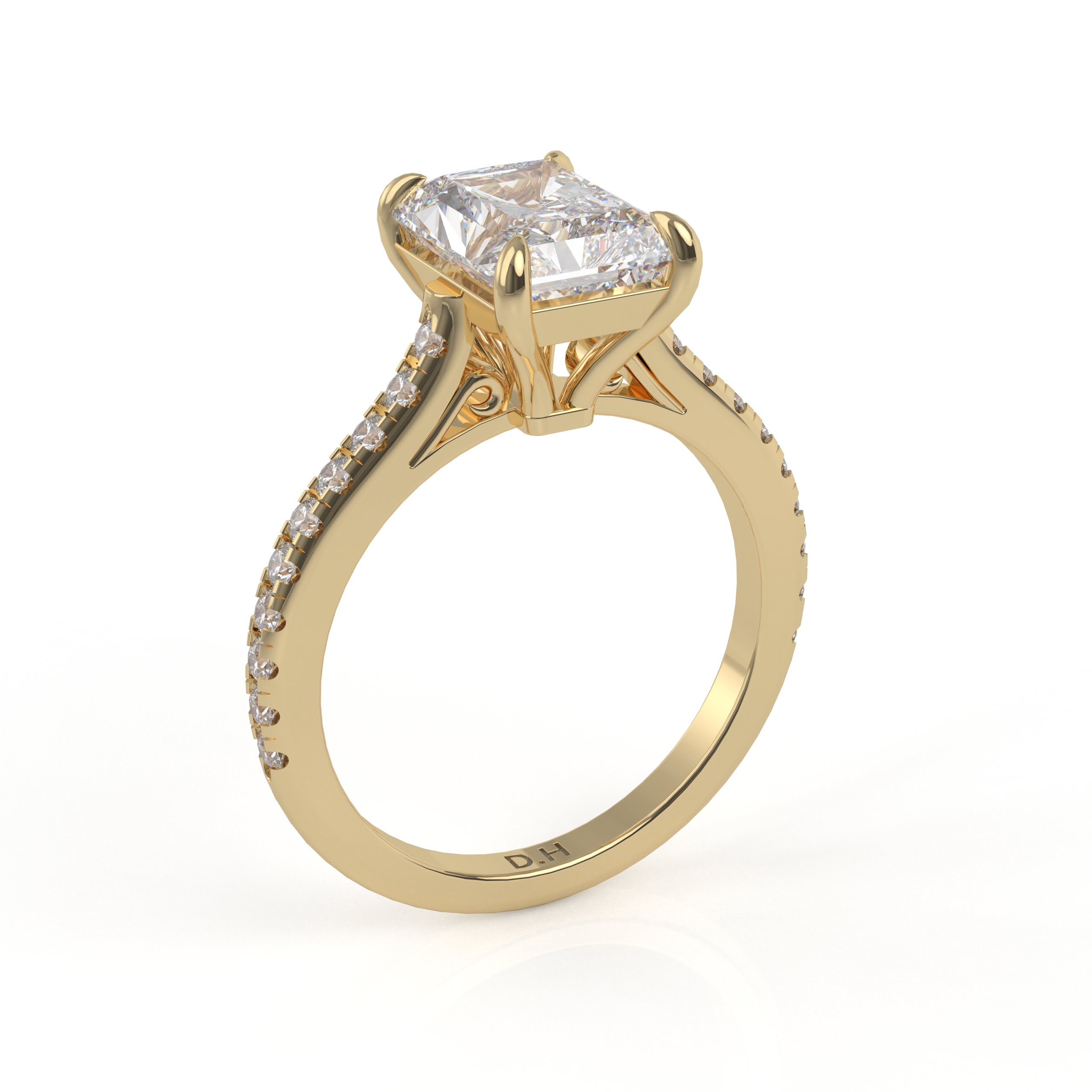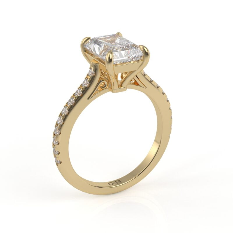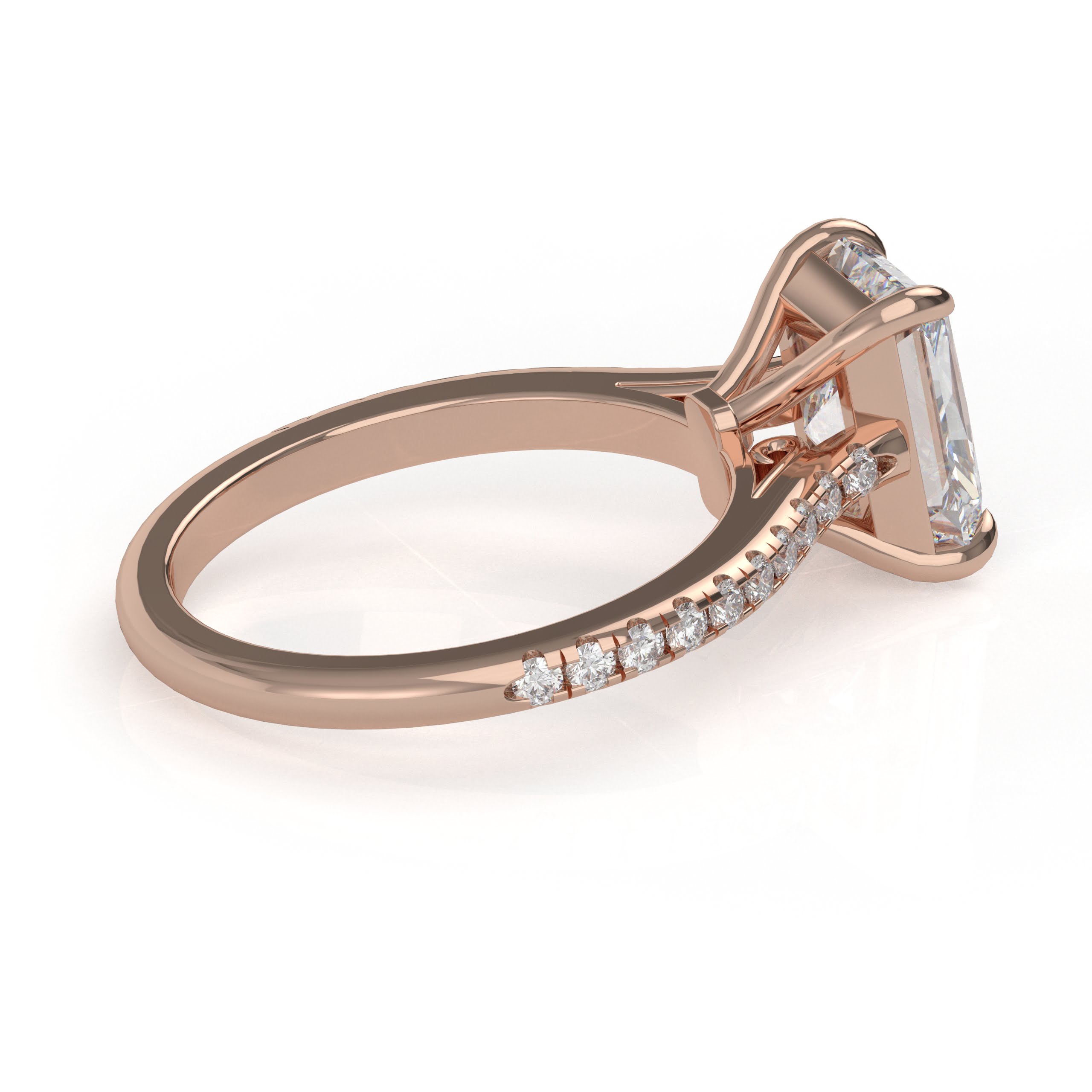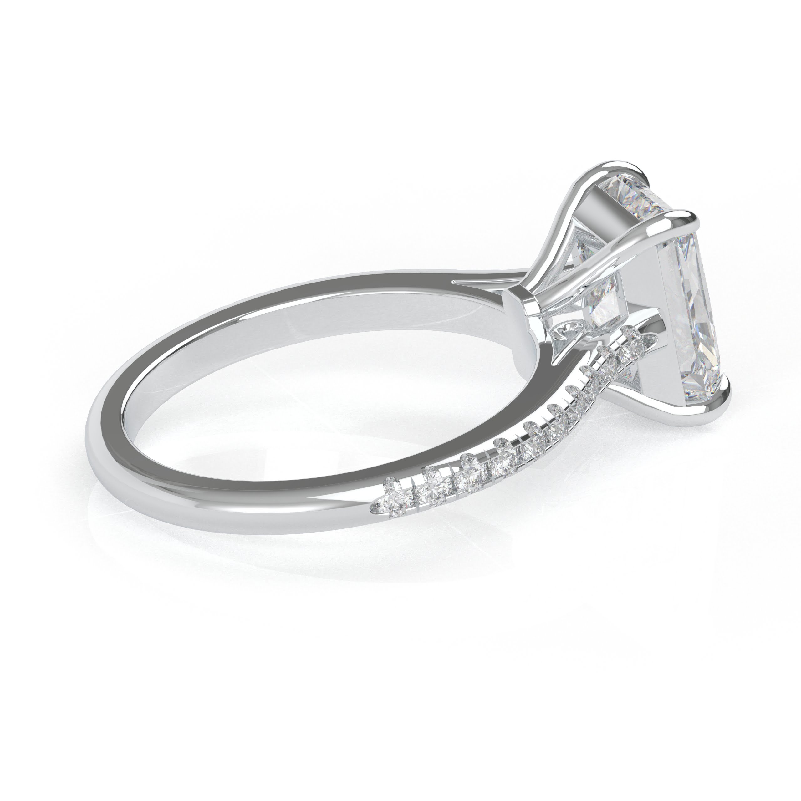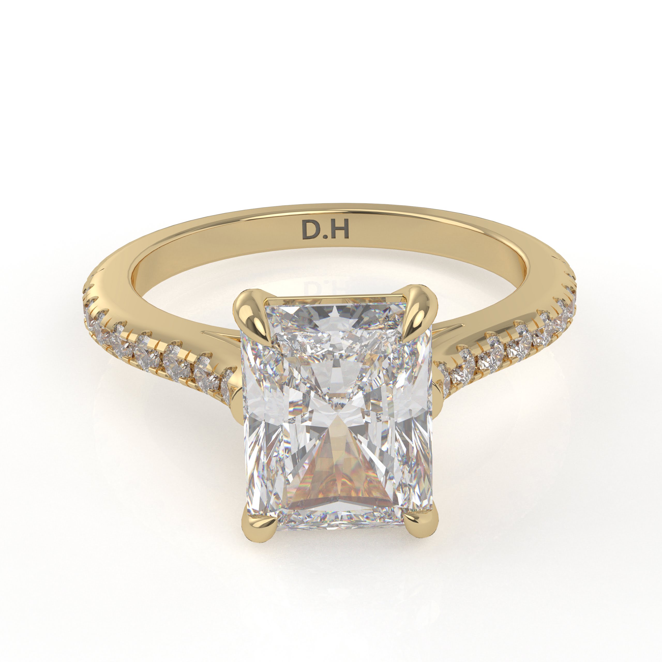Whoa! The diamond’s girdle is encircled by a tiny “hidden” pavé halo, an unexpected element that elevates this classic form to the pinnacle of understated beauty. This engagement ring can be special ordered in any finger size, in Platinum, 10KT, 14KT & 18KT gold and can be customized for any shape and size CenterStone.