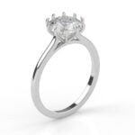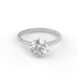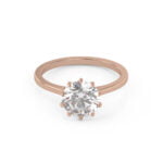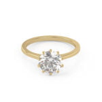 This Unique Solitaire engagement ring features a striking ten prong head with ball tips to secure and embellish the diamond in a stylish cathedral style ring.