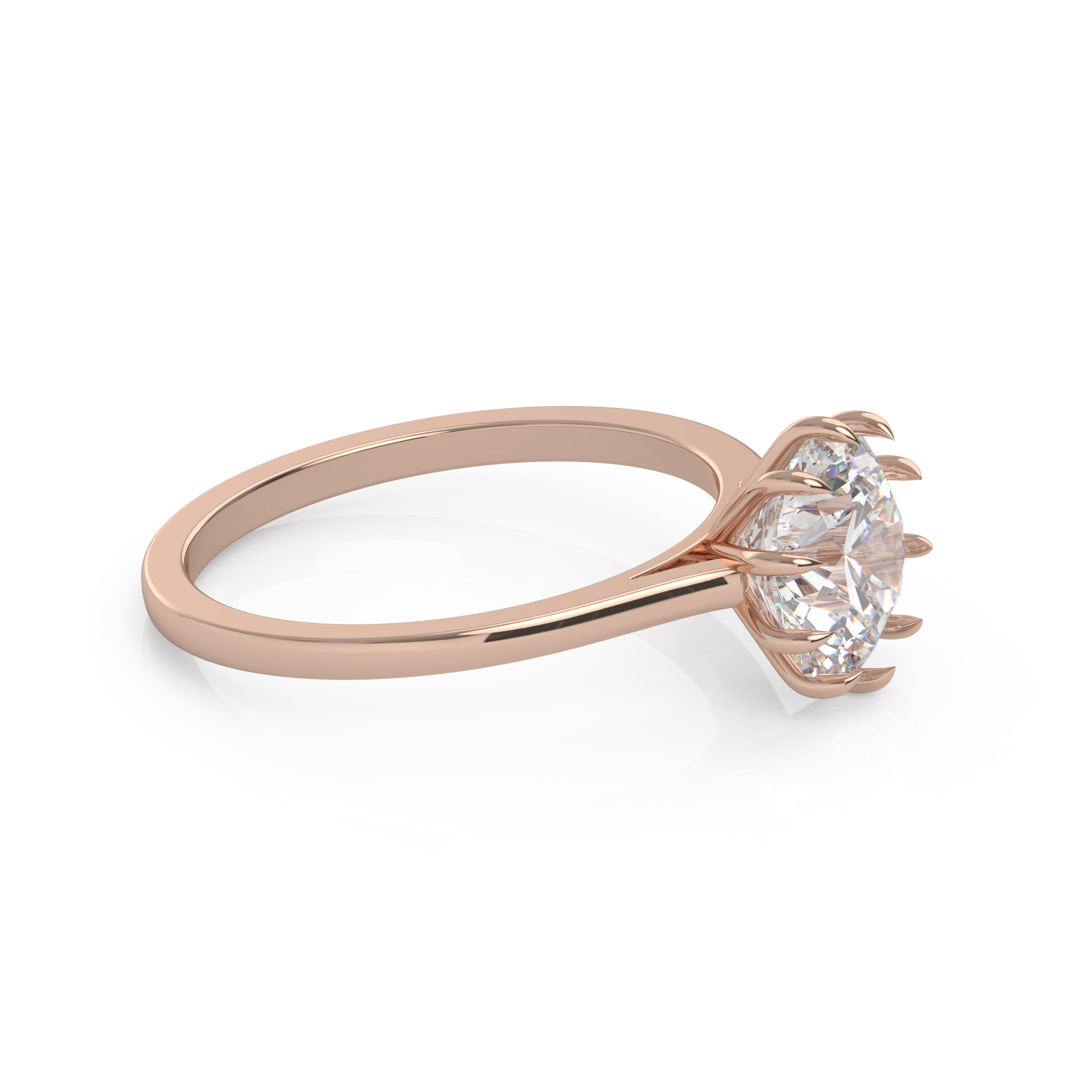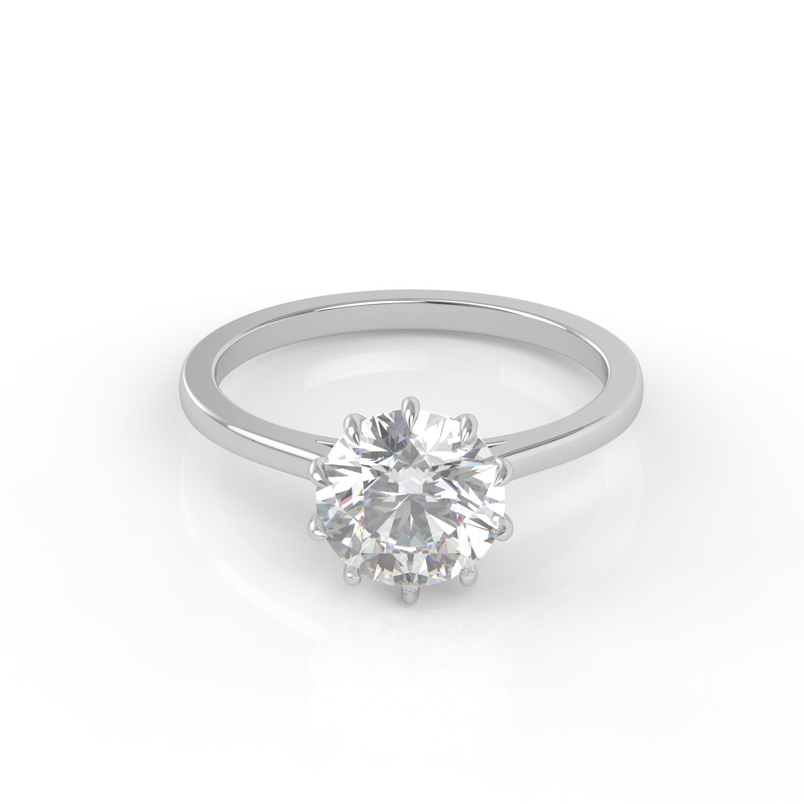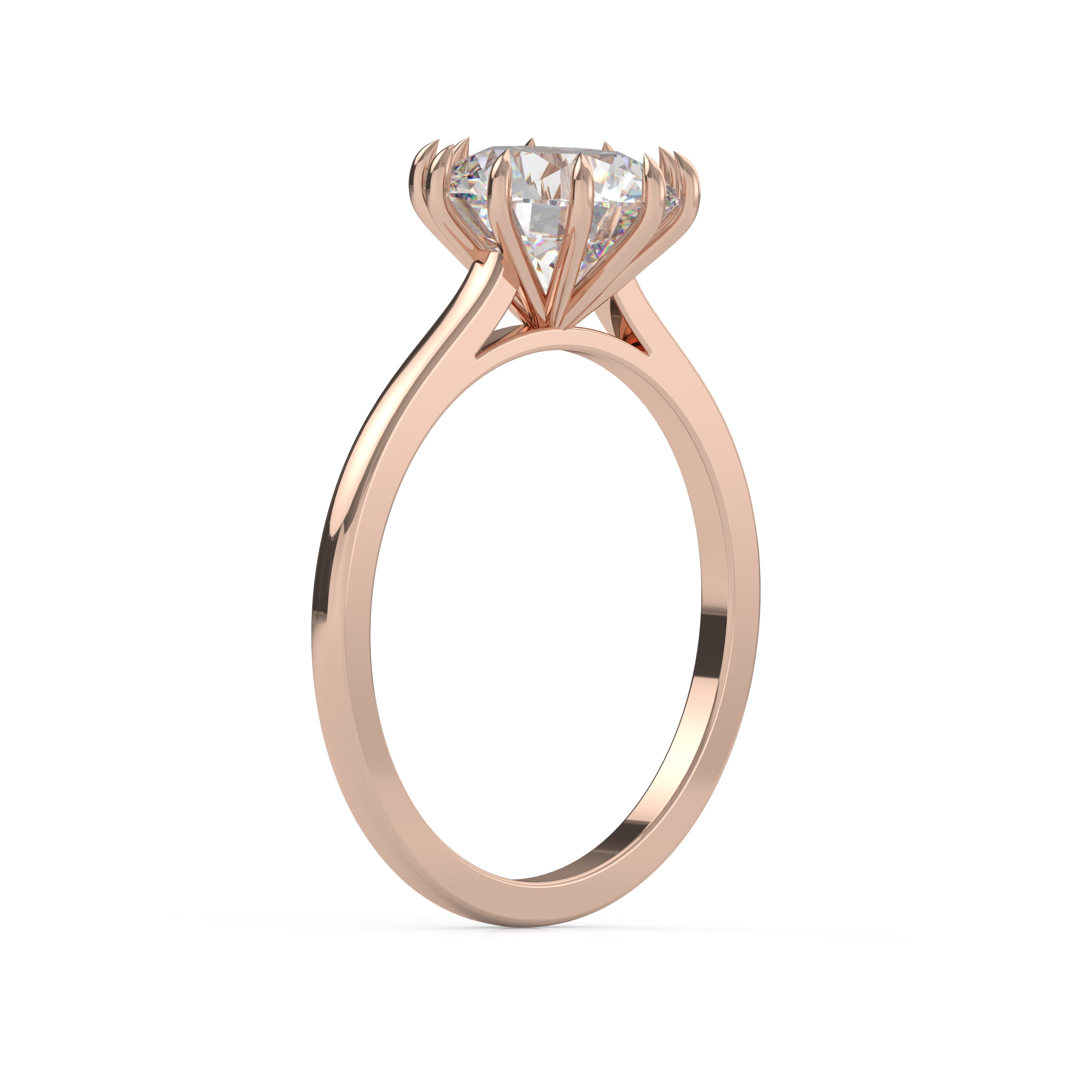 This Unique Solitaire engagement ring features a striking ten prong head with ball tips to secure and embellish the diamond in a stylish cathedral style ring.