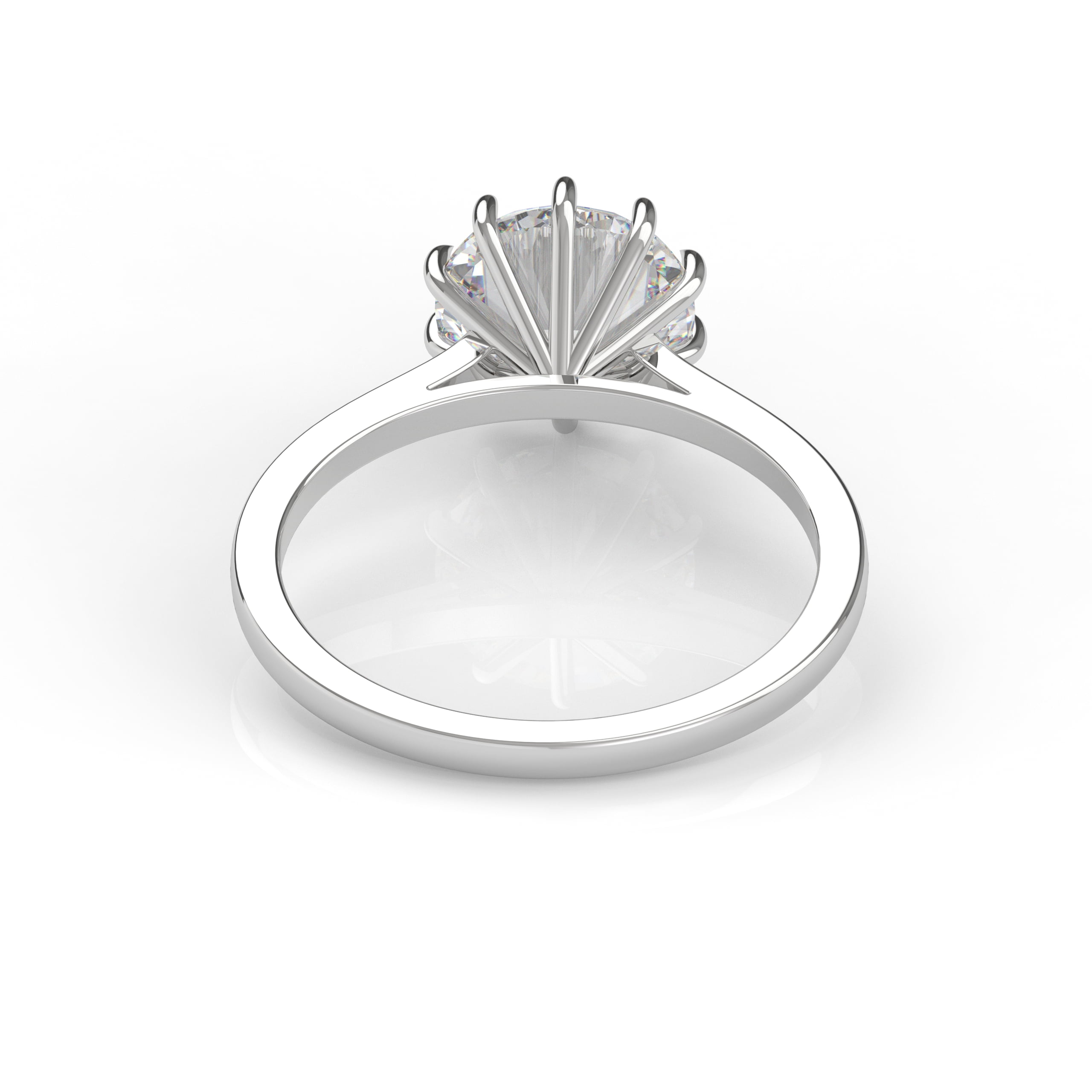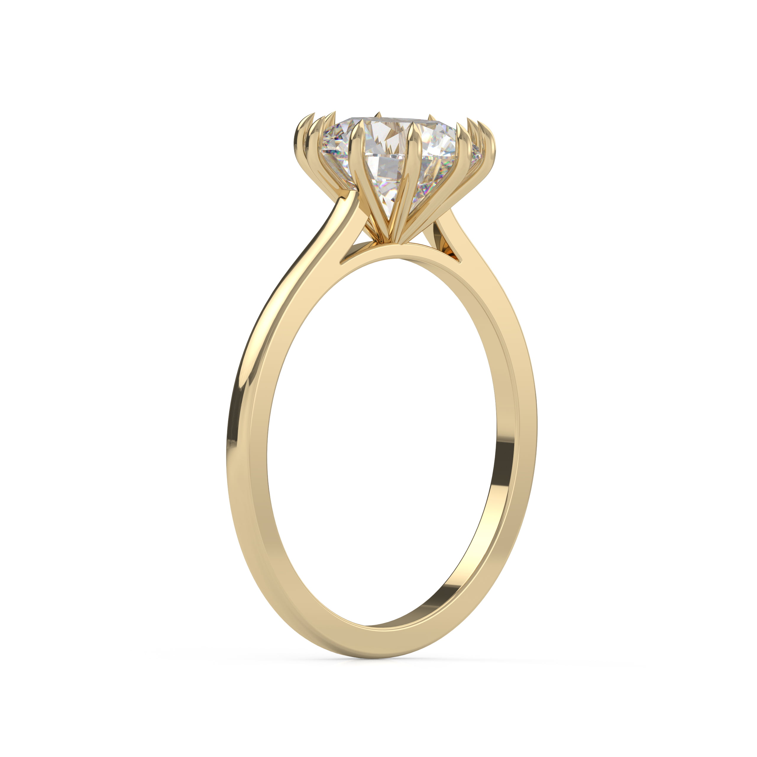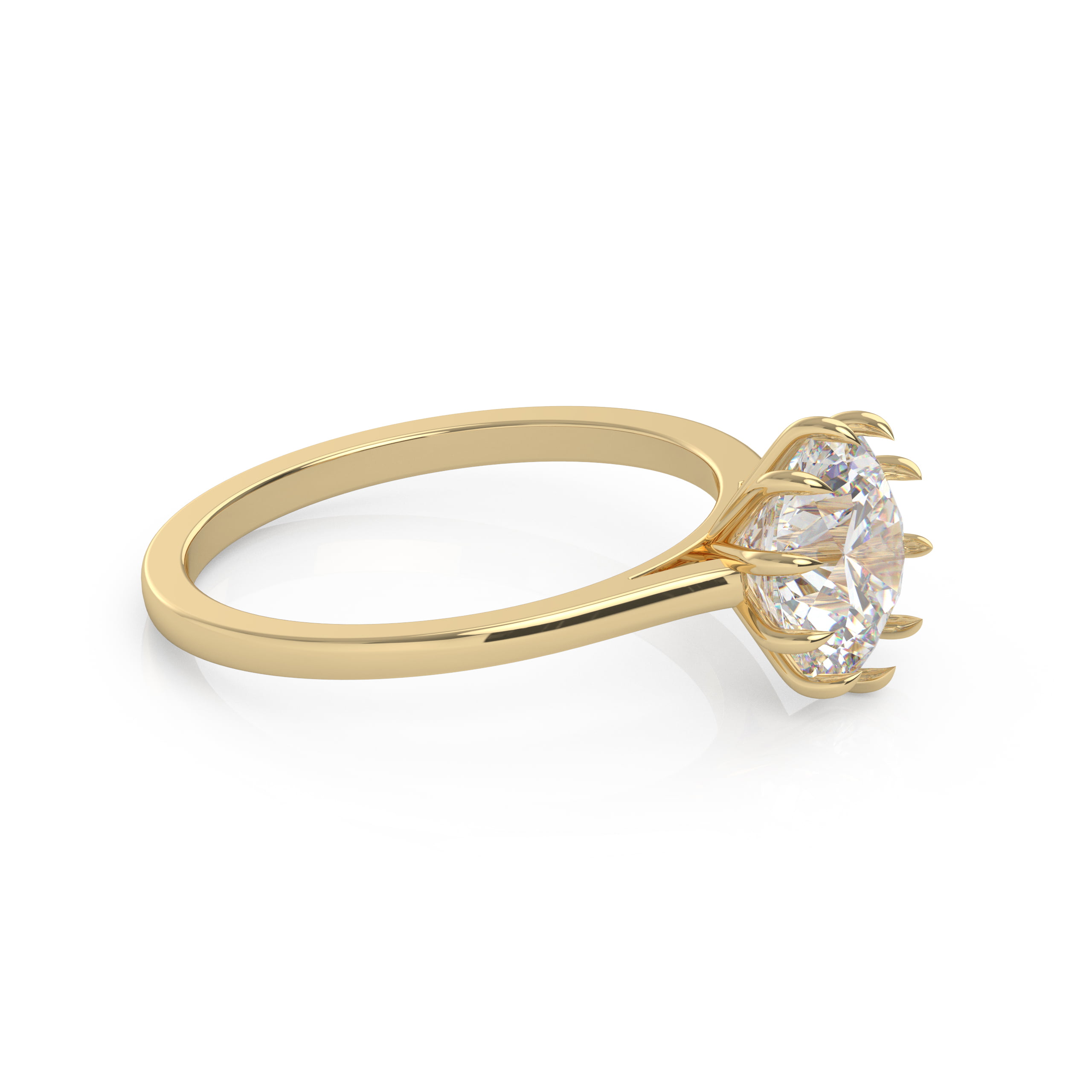 This Unique Solitaire engagement ring features a striking ten prong head with ball tips to secure and embellish the diamond in a stylish cathedral style ring.