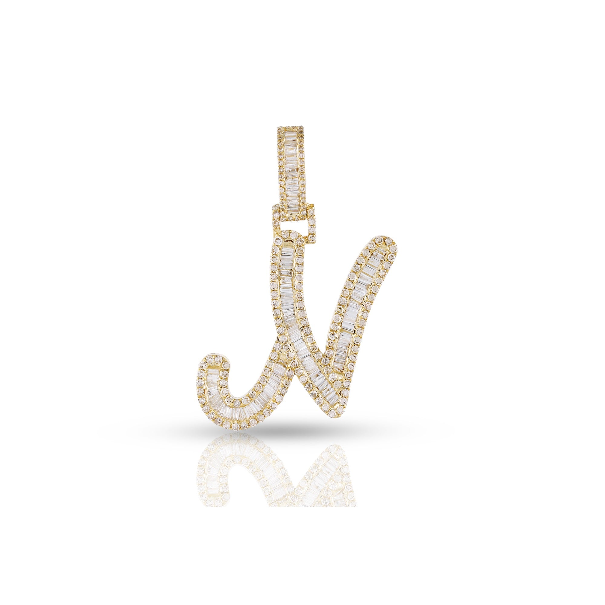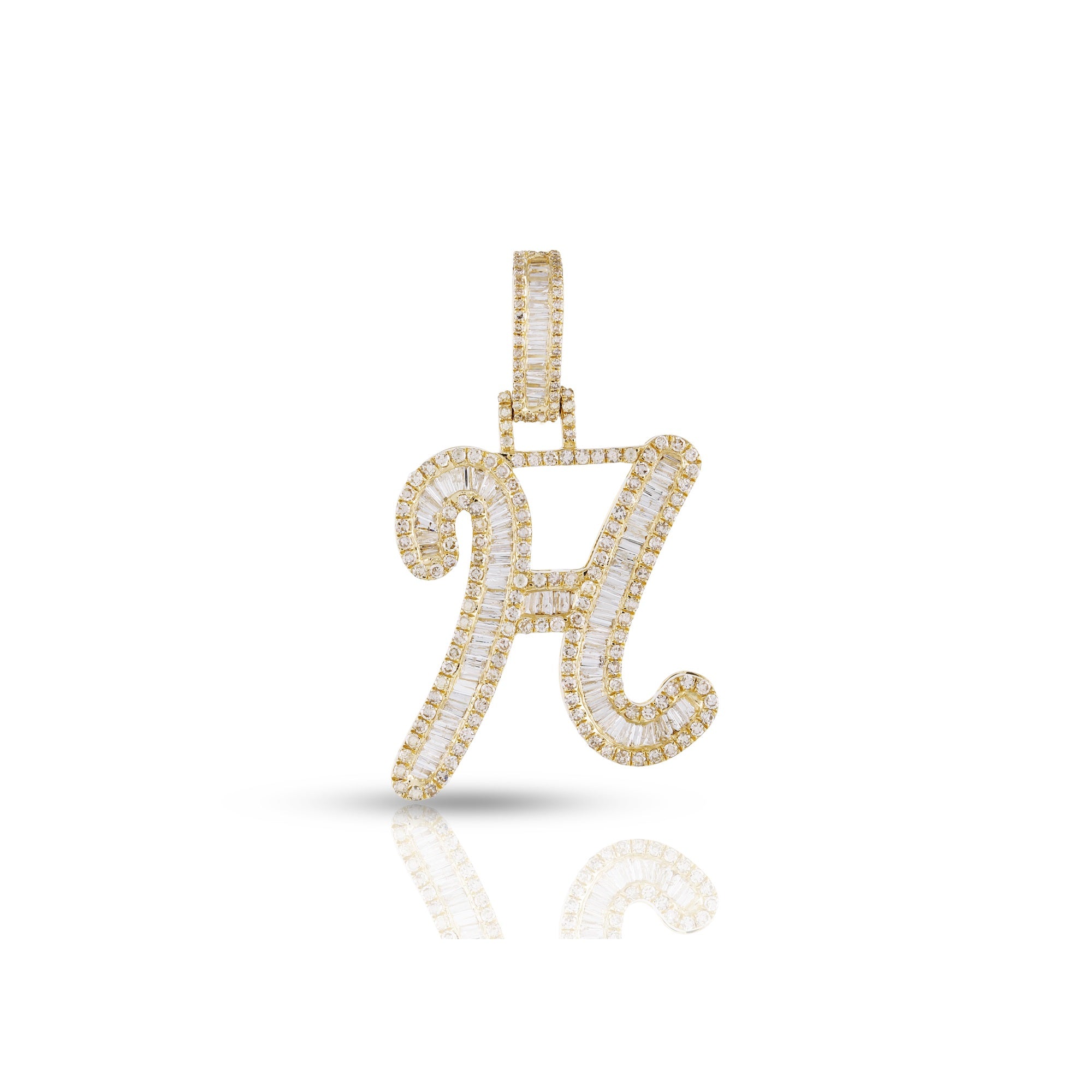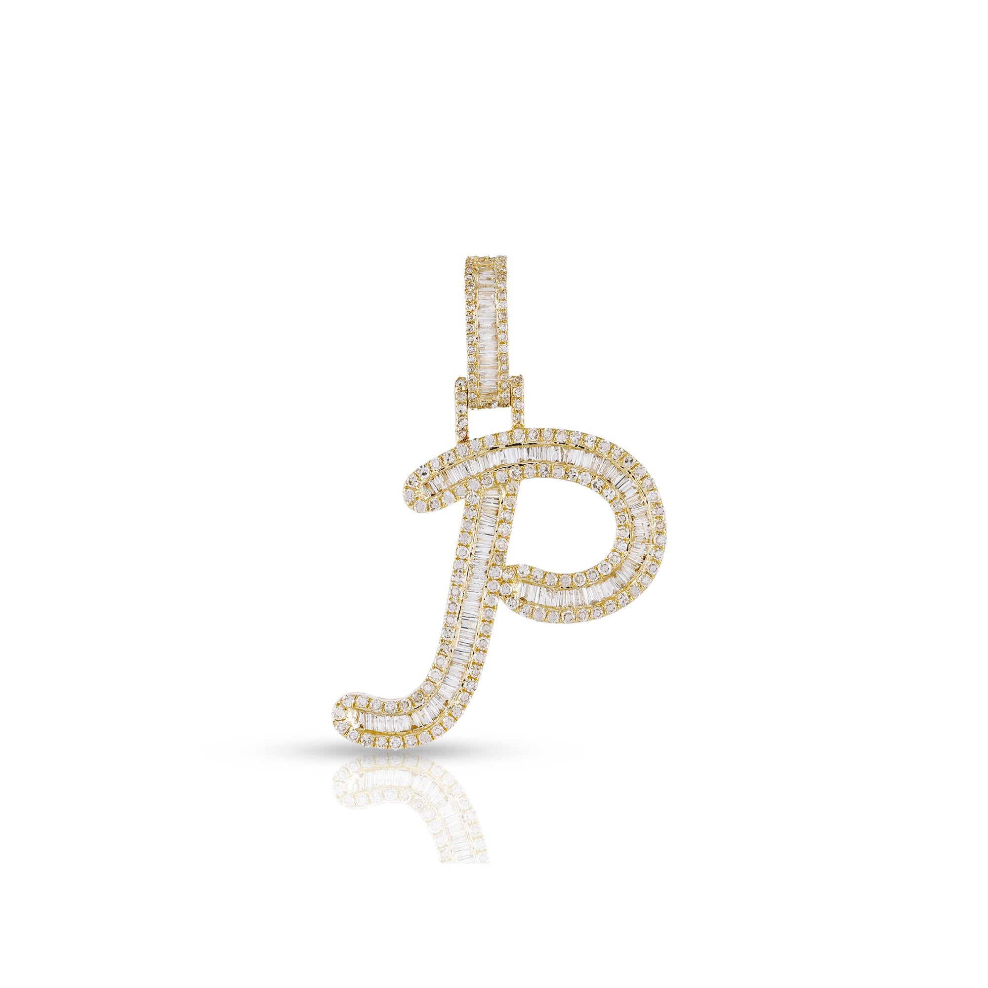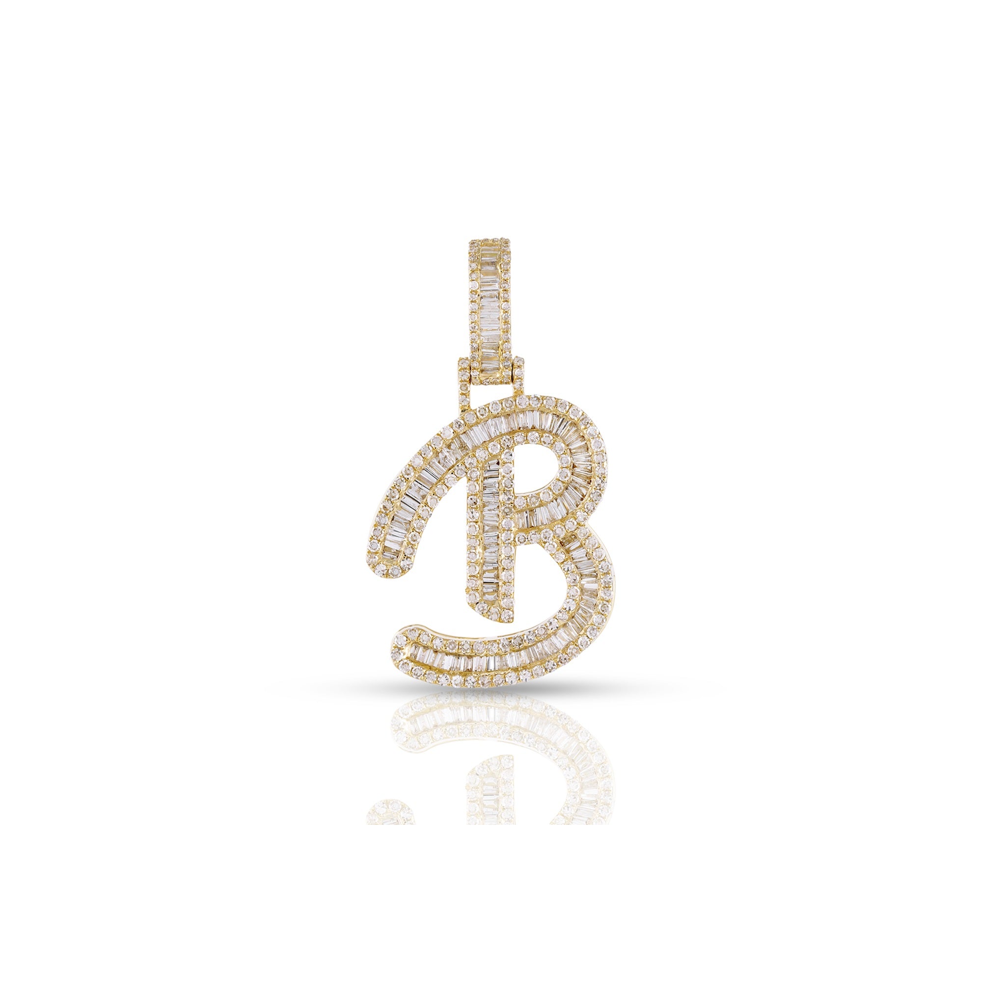 Enhance your style with the Personalized Yellow Gold Baguette Diamond Initial Pendant by 4c Diamond Hub. Crafted with exquisite yellow gold and adorned with brilliant baguette diamonds, this pendant offers a unique and luxurious way to showcase your individuality.