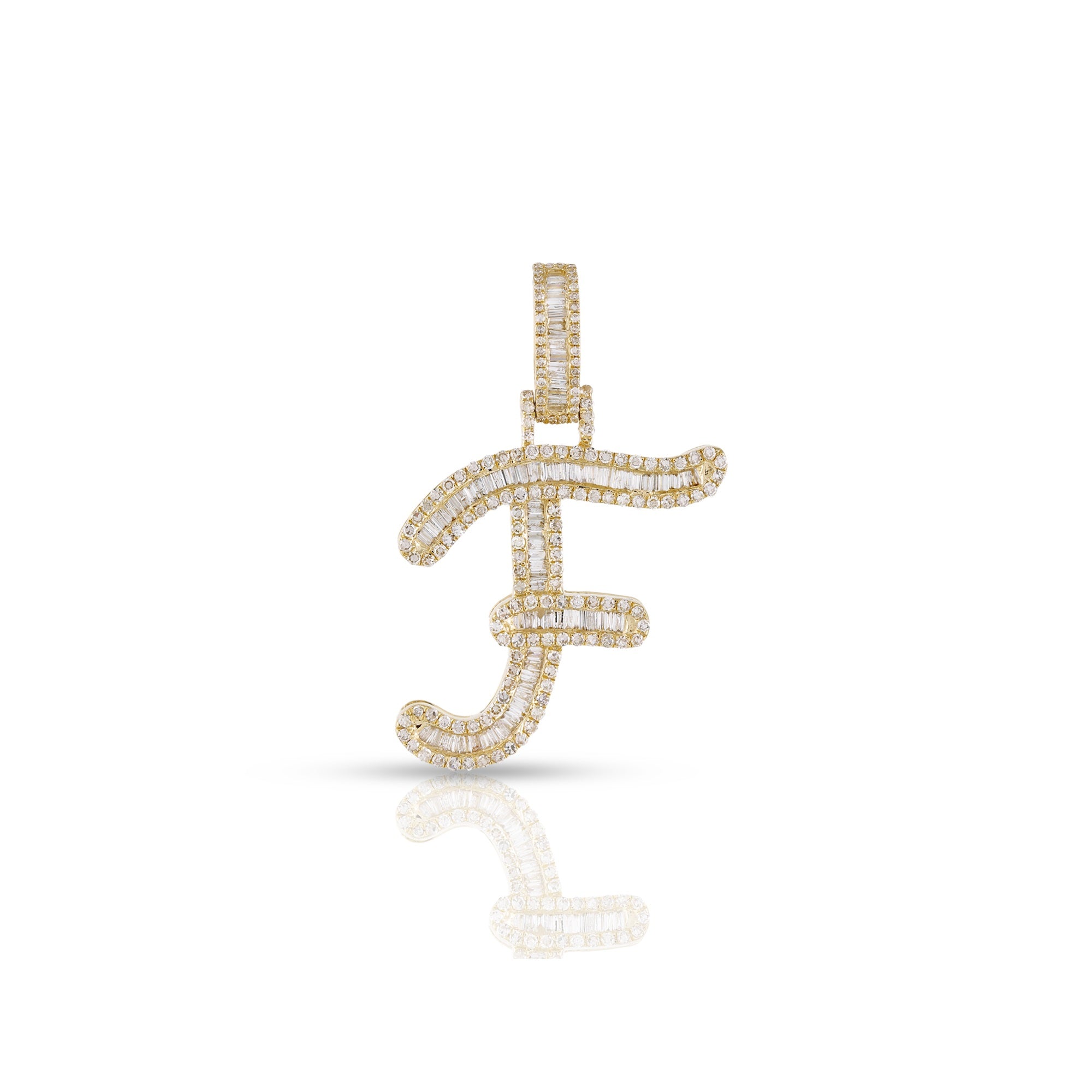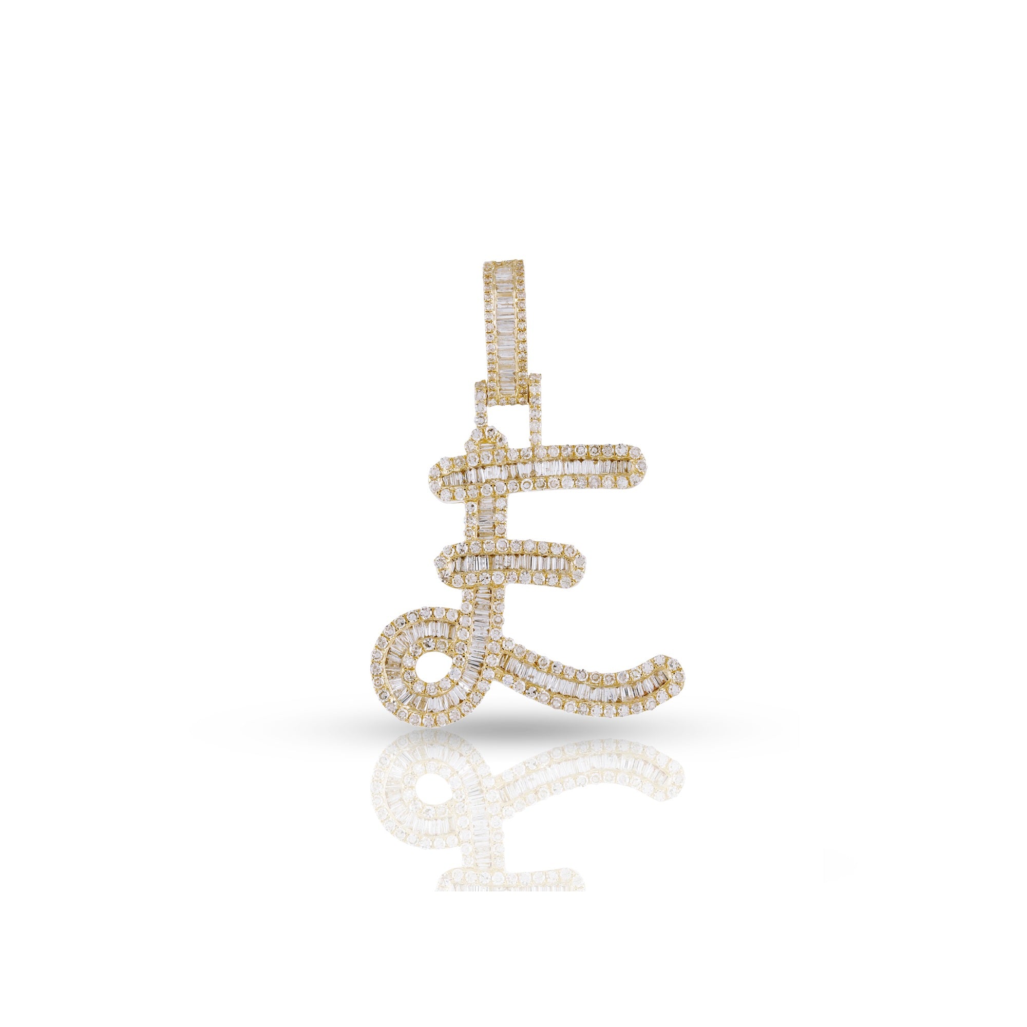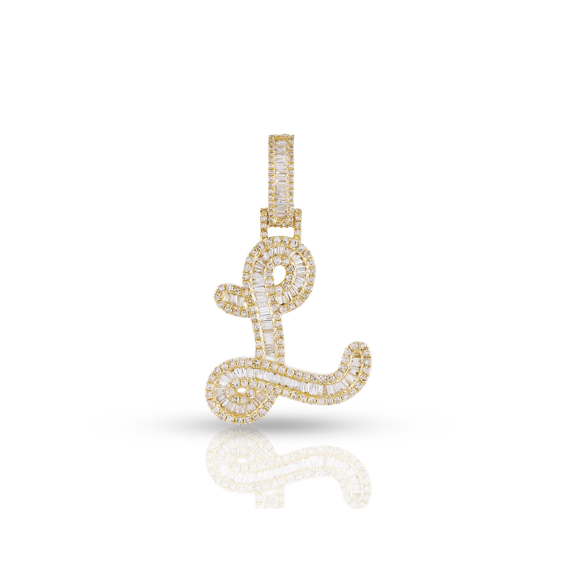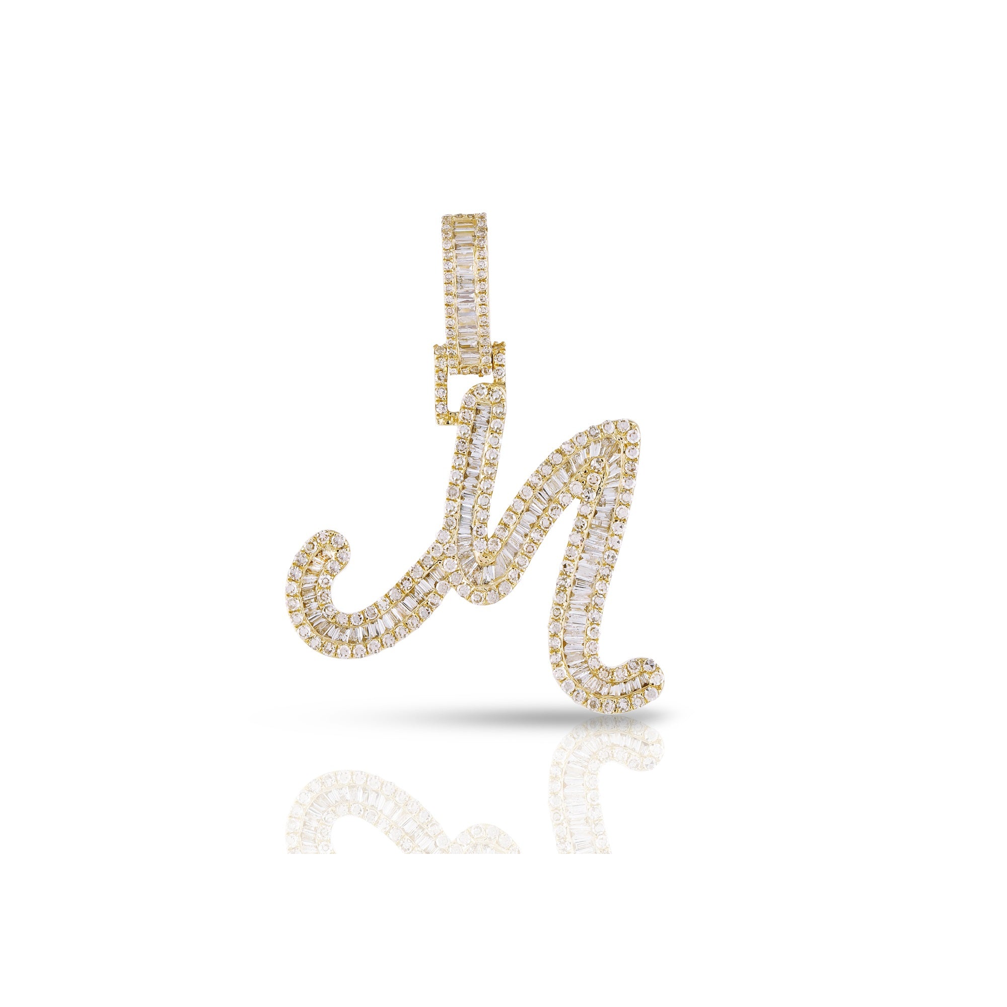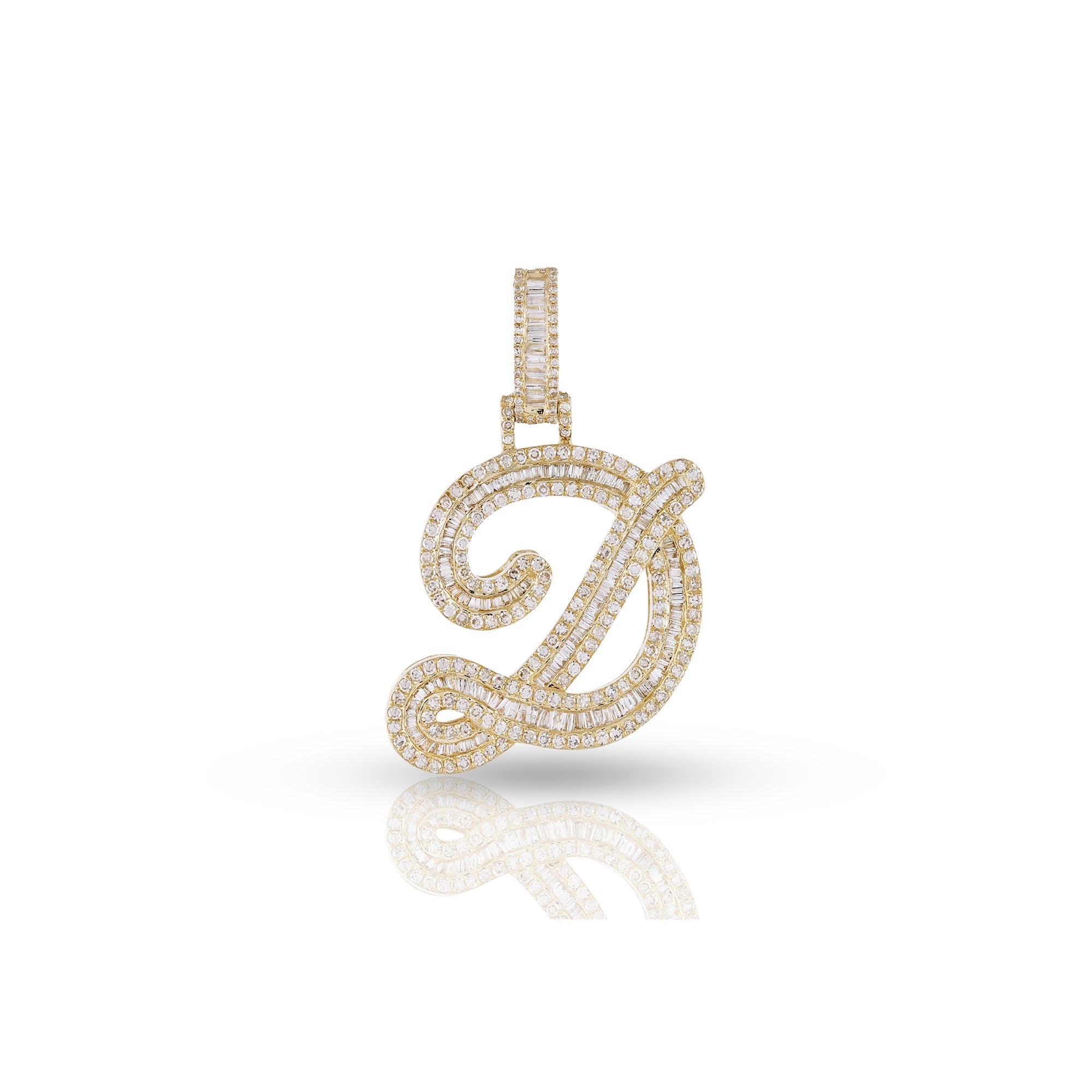 Enhance your style with the Personalized Yellow Gold Baguette Diamond Initial Pendant by 4c Diamond Hub. Crafted with exquisite yellow gold and adorned with brilliant baguette diamonds, this pendant offers a unique and luxurious way to showcase your individuality.